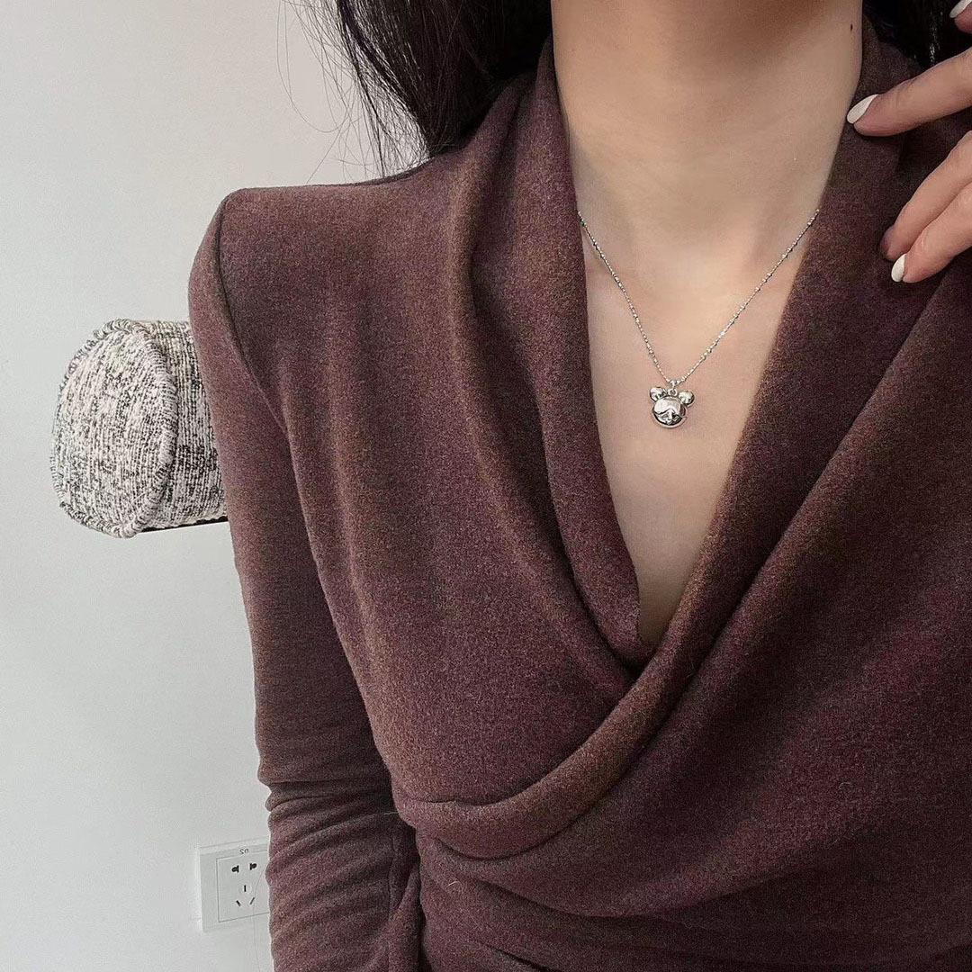 Compra Collar de plata de ley 925 a juego, joyería para mujer, colgante de ratón de nicho de alta calidad, cadena de suéter, cadena de clavícula, nueva moda al por mayor en Joom.pro