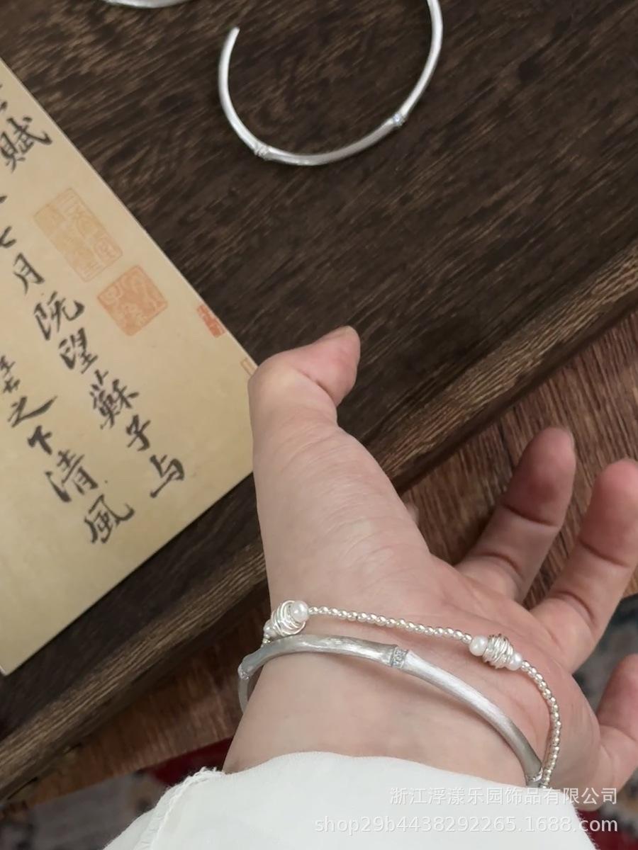 Nueva pulsera china de bambú de cuerpo entero de plata esterlina S925, estilo moderno, sencilla y combinable.