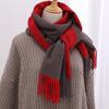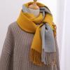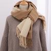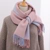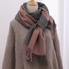 Otoño e Invierno Nueva Moda Estilo Coreano Cálido Cuello Bufanda de Cachemira de Doble Cara con Flecos y Combinación de Colores para Mujer Invierno Exterior para Montar