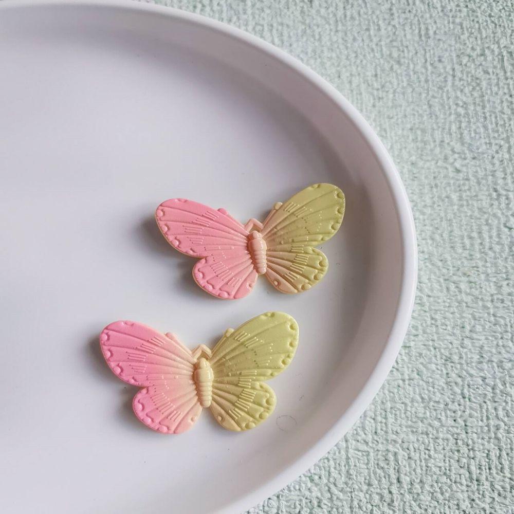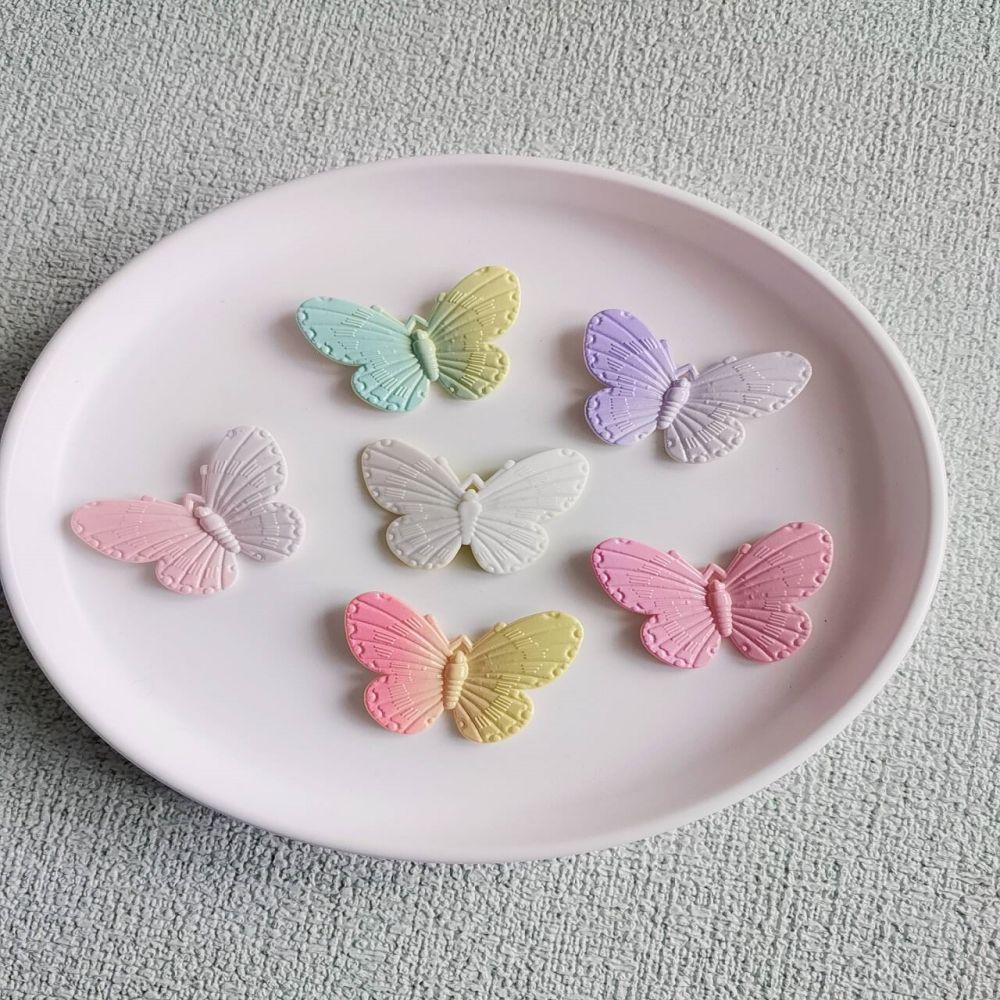 Gran oferta de accesorios de resina con forma de mariposa con degradado de simulación, fundas para teléfono, accesorios para el cabello, horquillas con agujeros para zapatos, accesorios hechos a mano.