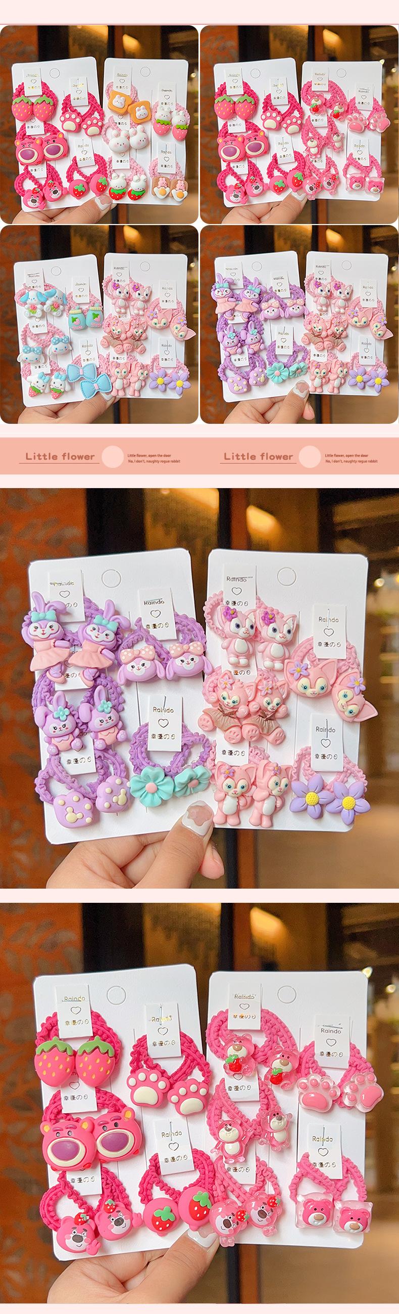 | Horquillas y cuerdas para el cabello de dibujos animados de verano para niños, lindos anillos para el cabello para niñas, juego de horquillas de princesa, accesorios para el cabello de dopamina |