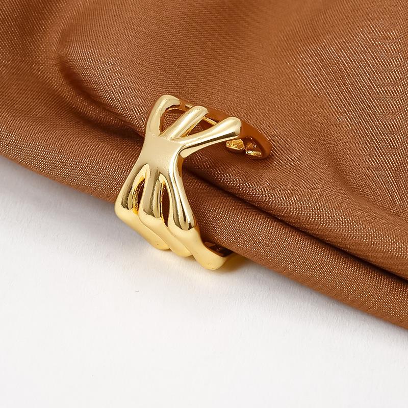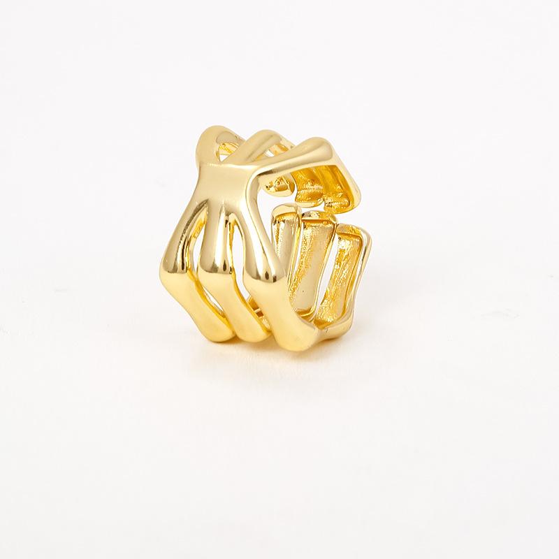 Comercio Exterior Nuevo Diseño de Personalidad Anillo de Hueso de Mano Abierta Cobre de Alto Color Chapado en Oro Real Estilo Europeo y Americano Anillo Creativo Hip Hop