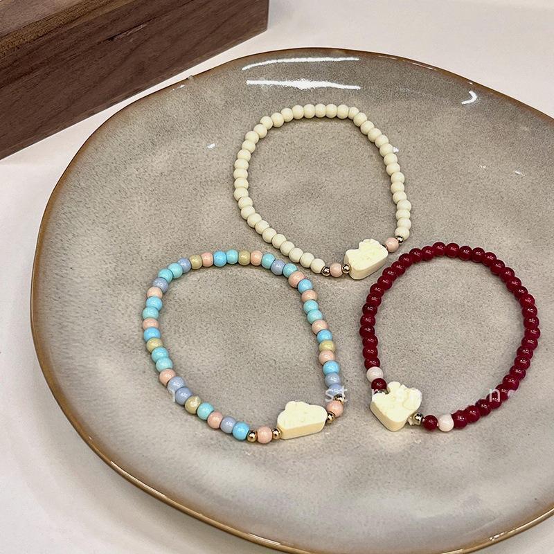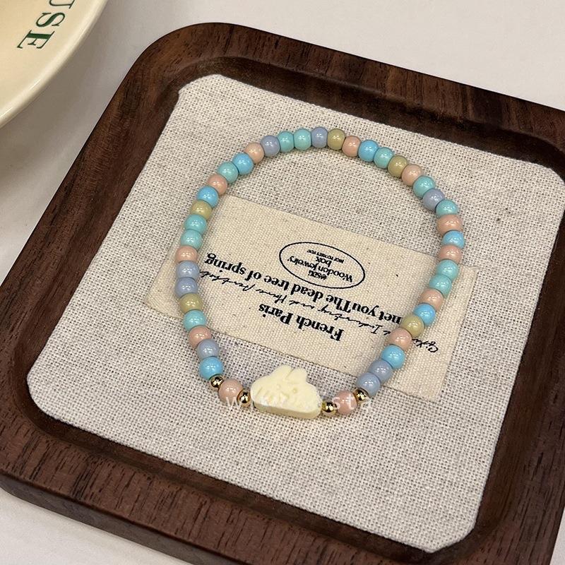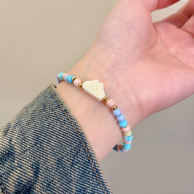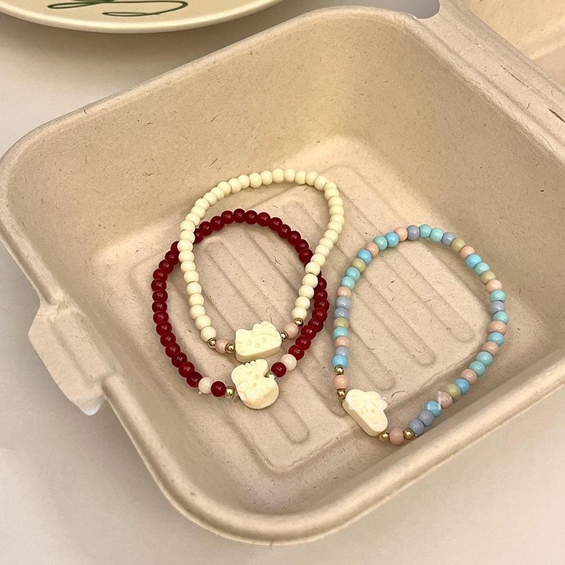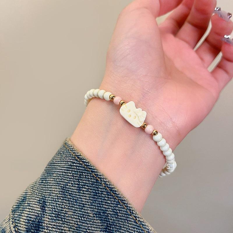 Lindo Diseño Gatito de Dibujos Animados Pulsera de Cuentas para Mujer Pulsera Dulce Ins Estilo Fresco Pequeño Pulsera de Moda China