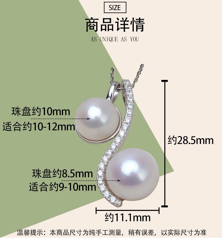 Accesorios colgante de perlas diy colgante de plata S925 para mujer 3 piezas cabello fetal doble cuenta colgante soporte vacío cadena clavícula 2973