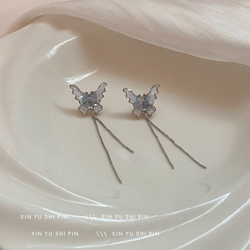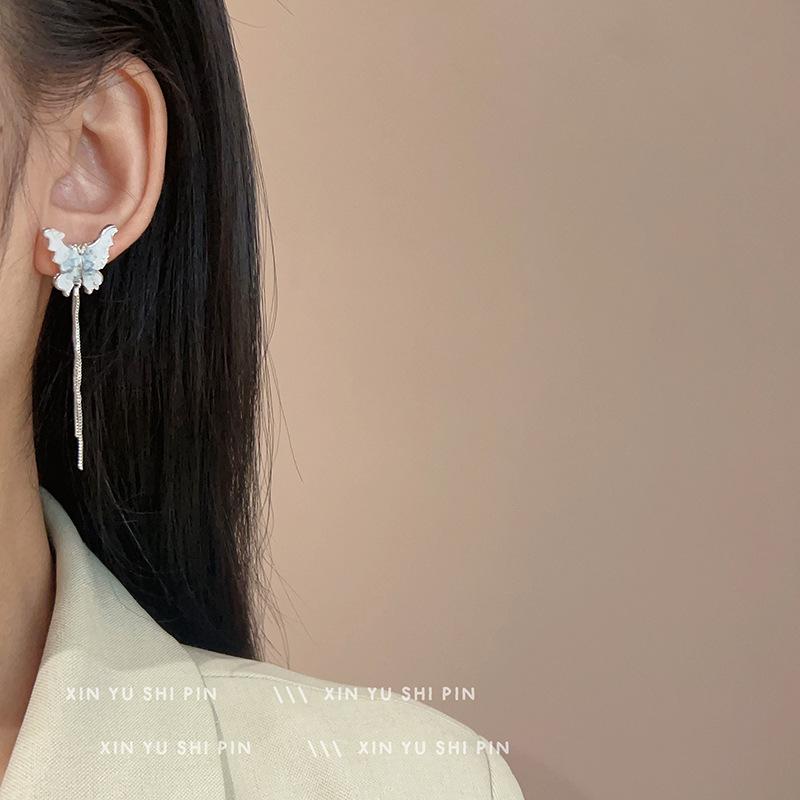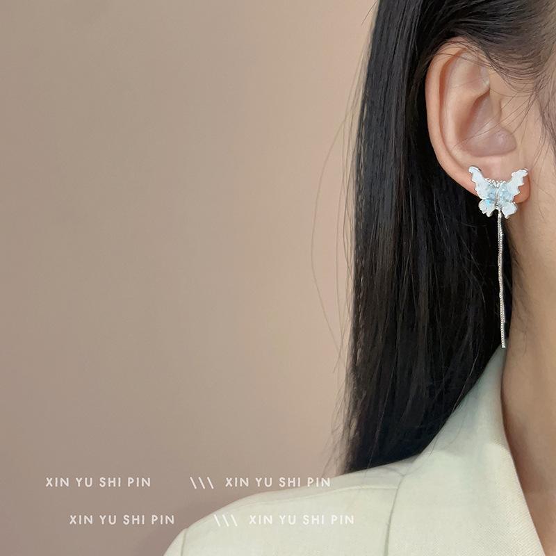 Nuevos pendientes largos con borlas de mariposa para mujer, elegantes y dulces, con diseño de nicho y sentido avanzado, venta al por mayor.