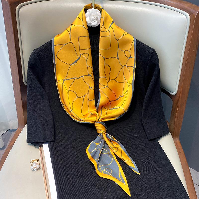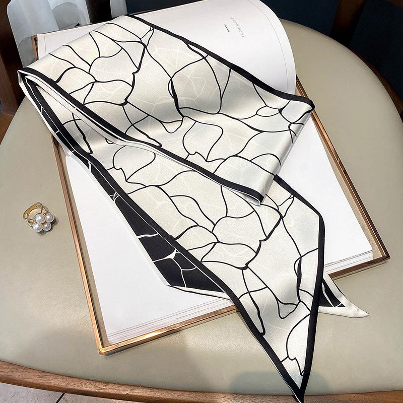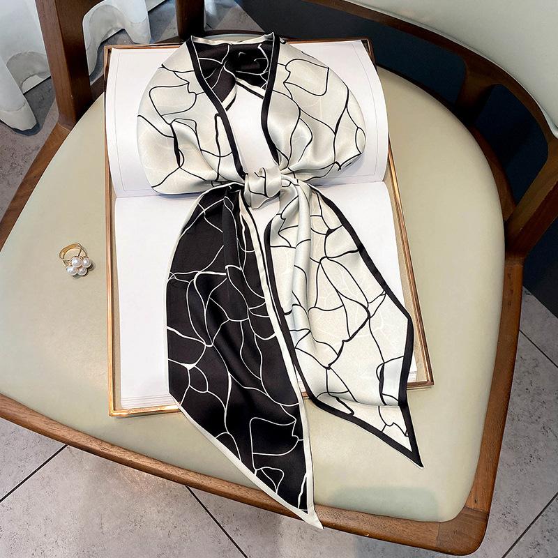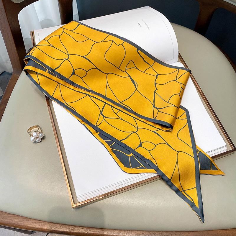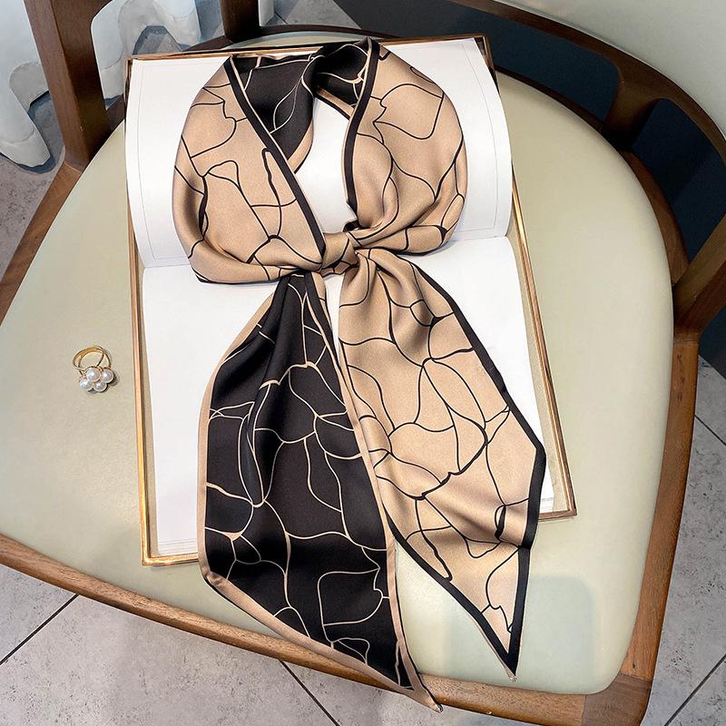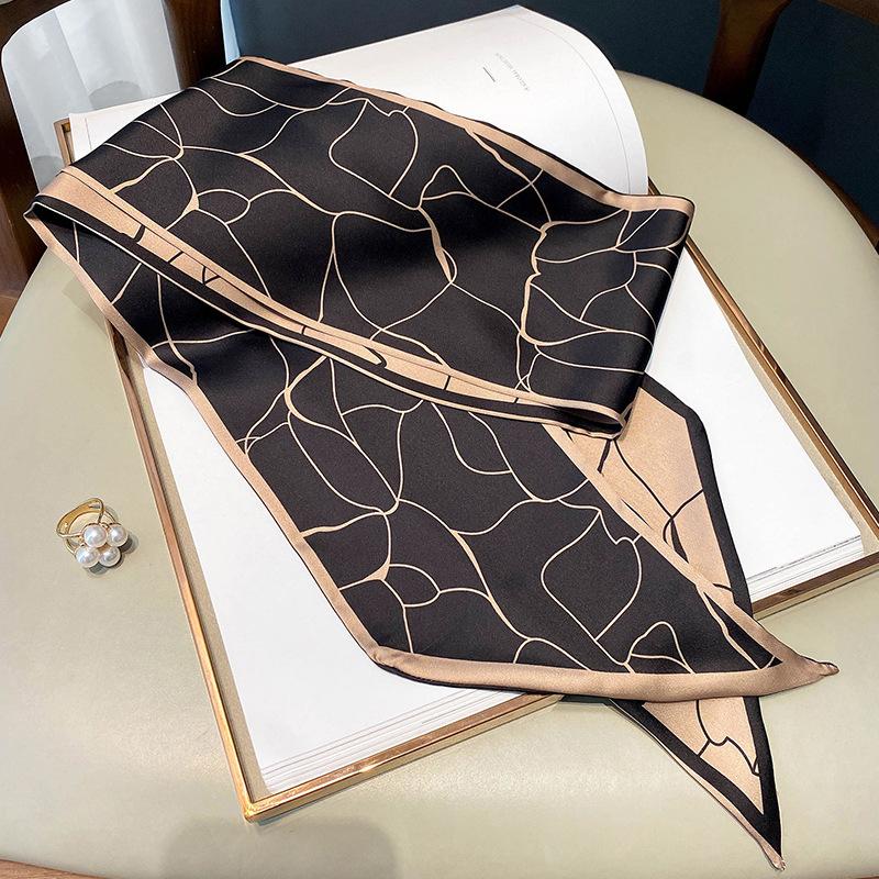 | Bufanda de seda retro, bufanda estrecha y larga de imitación de seda, decoración femenina con esquinas afiladas, decoración de moda, diadema de seda, bufanda al por mayor |