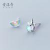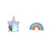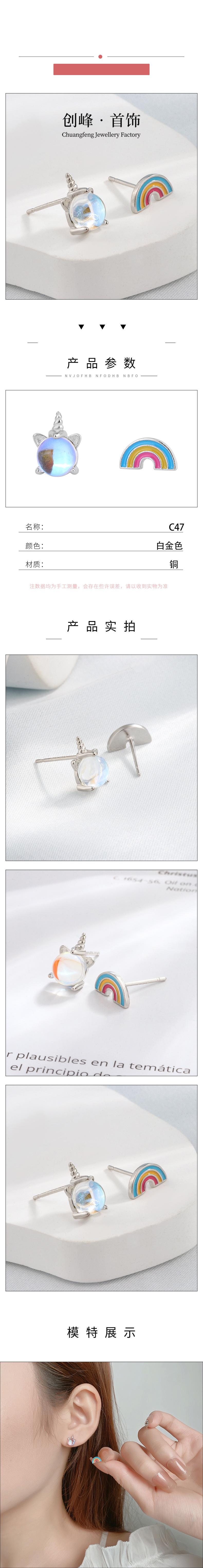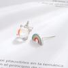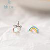 Coloridos aretes asimétricos de piedra lunar día corazón de chica de Corea del Sur aretes de unicornio arcoíris Mori para mujeres Venta al por mayor