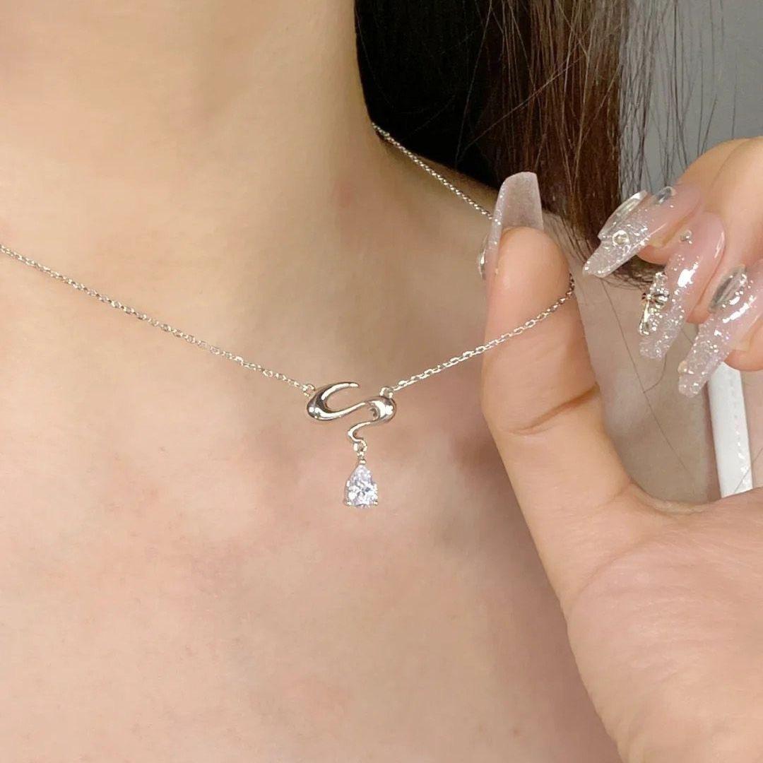 Collar de gota de agua dulce que fluye, ligero, de lujo, de alta gama, para estudiantes, cadena de clavícula, regalo de cumpleaños para niñas