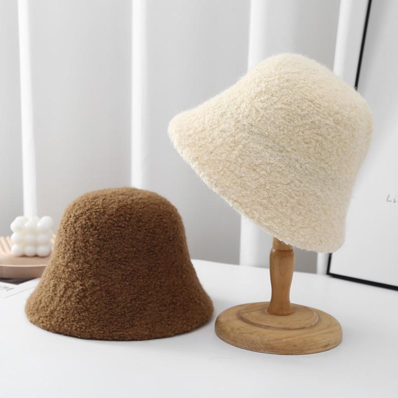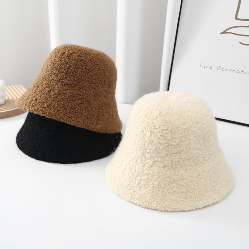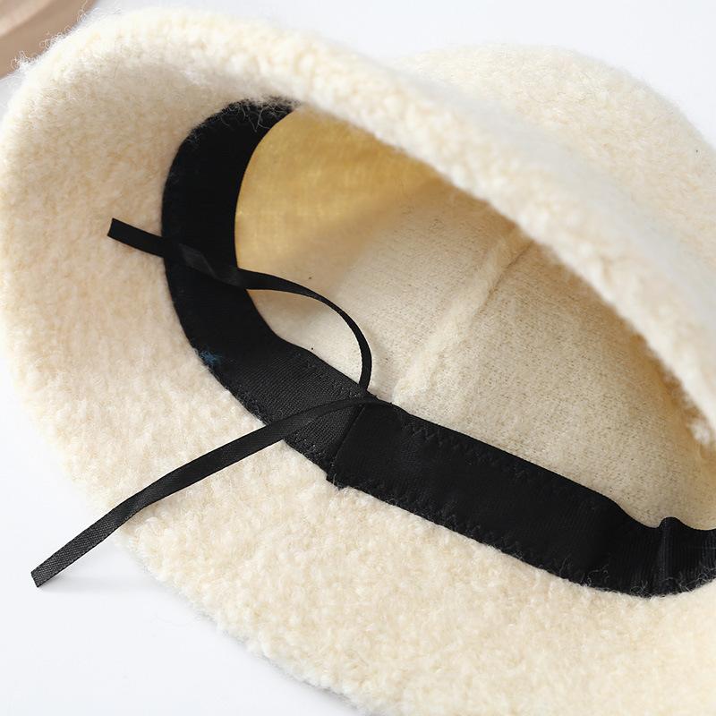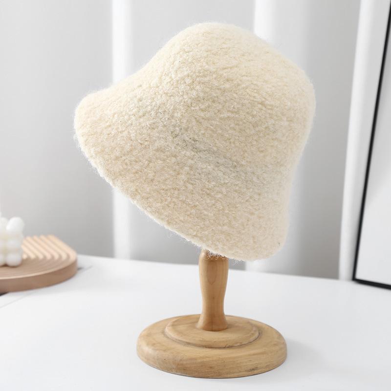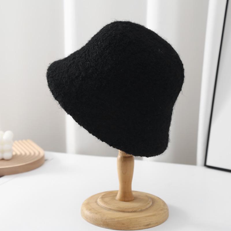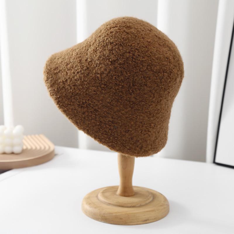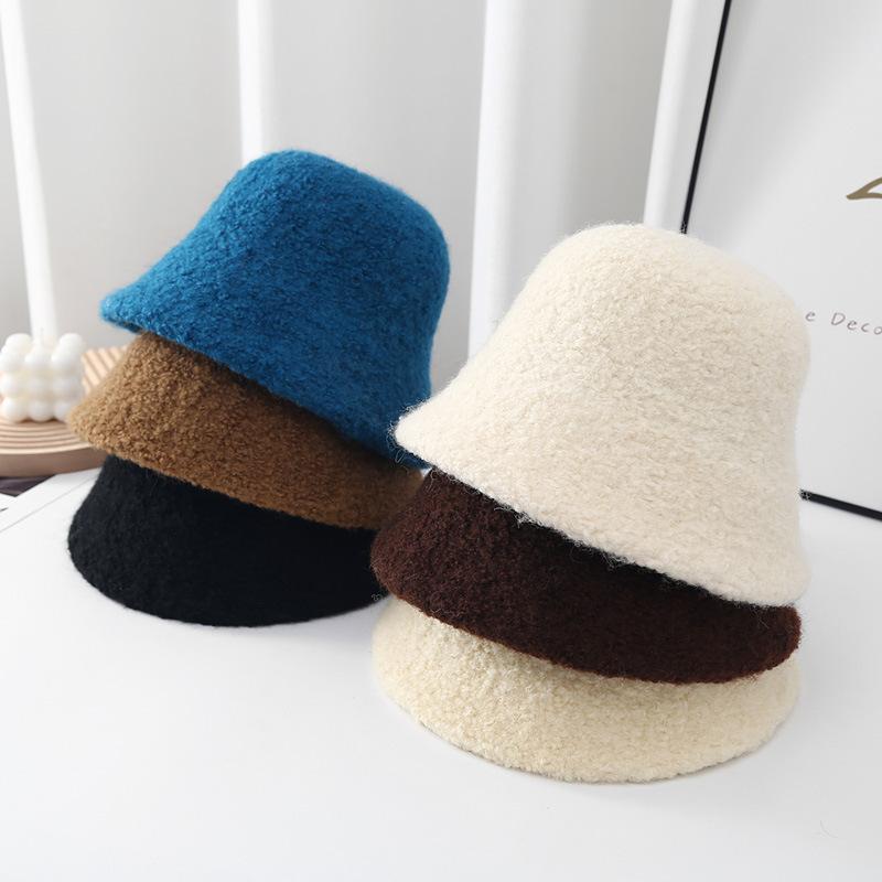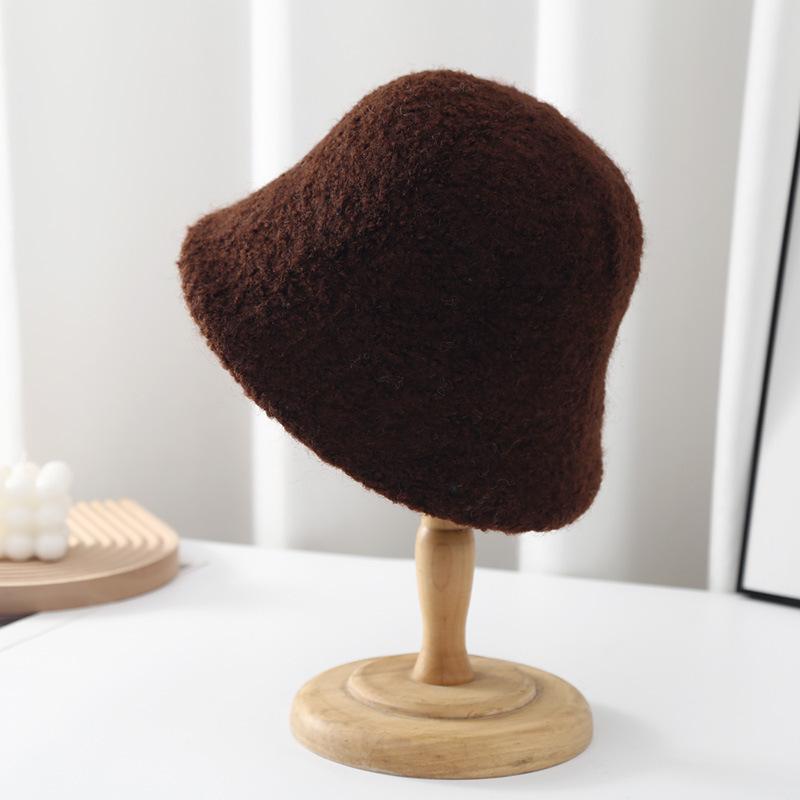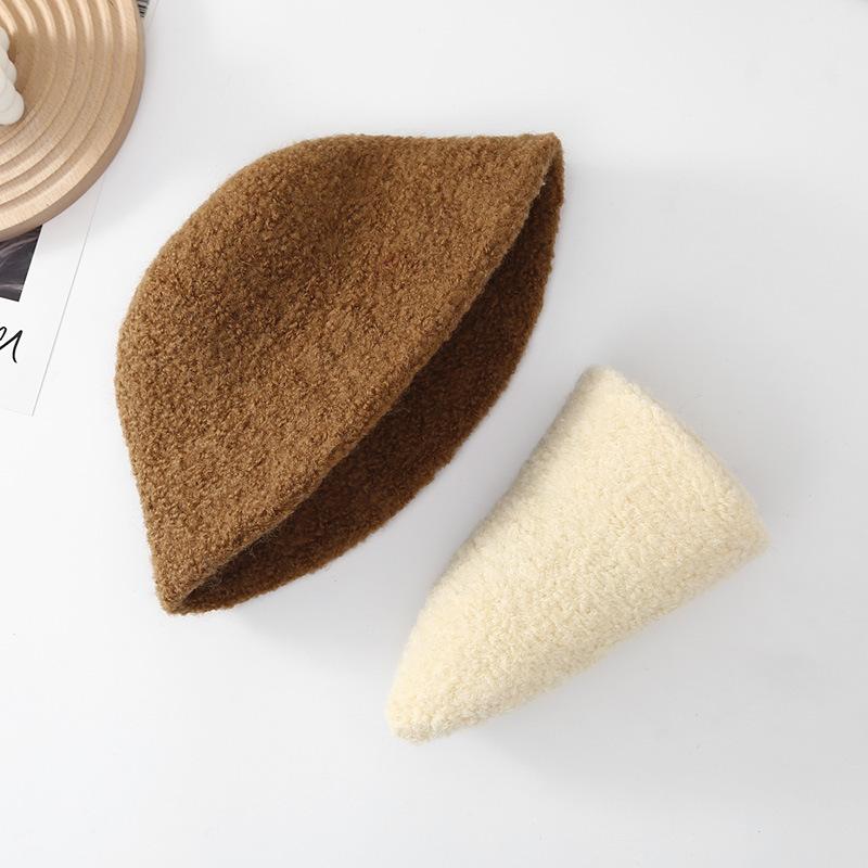Sombrero de pescador de lana simple de color sólido de estilo japonés para mujer, sombrero de cubo con cubierta facial lisa de otoño e invierno, sombrero de lavabo pequeño con apariencia cálida y marea