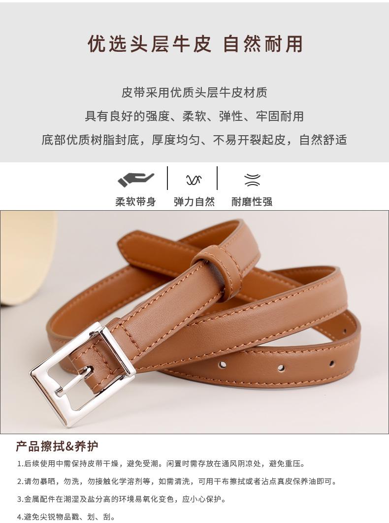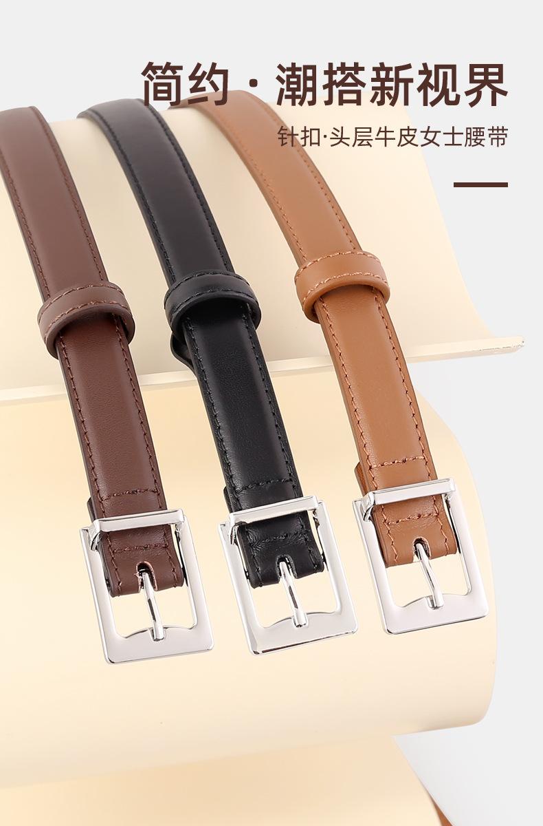 Cinturón fino de cuero genuino para mujer, cinturón decorativo versátil de moda para traje, falda, chaqueta, cinturón de fábrica al por mayorRMB:25.00
