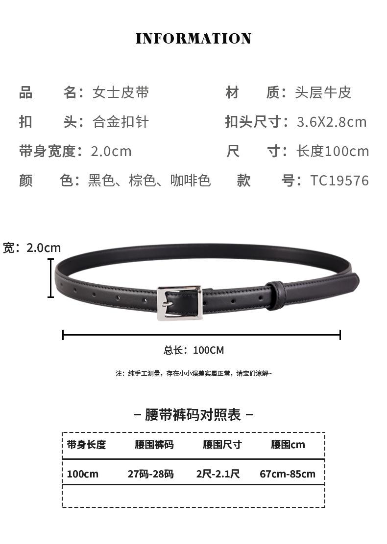 Cinturón de mujer de piel de vaca de capa superior, nuevo estilo ins combinable con todo, decoración de cuero genuino con falda, cinturón de pantalón estrecho, verano 2022RMB:32.00