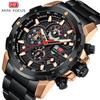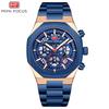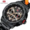 Reloj MINI FOCUS multifunción para hombre, reloj de negocios, resistente al agua, de cuarzo, con correa de acero hueca, 0411G