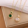Collar de acero de titanio con gema esmeralda retro europea y americana para mujer, estilo nicho, combina con todo, cadena de clavícula de celebridades de Internet, joyería de moda.