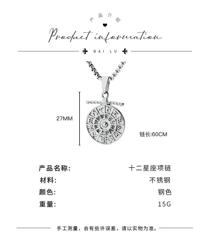 Collar de marca redonda de doce constelaciones de acero de titanio con explosiones transfronterizas, moda europea y americana INS, cadena a juego de acero inoxidable para hombres y mujeres