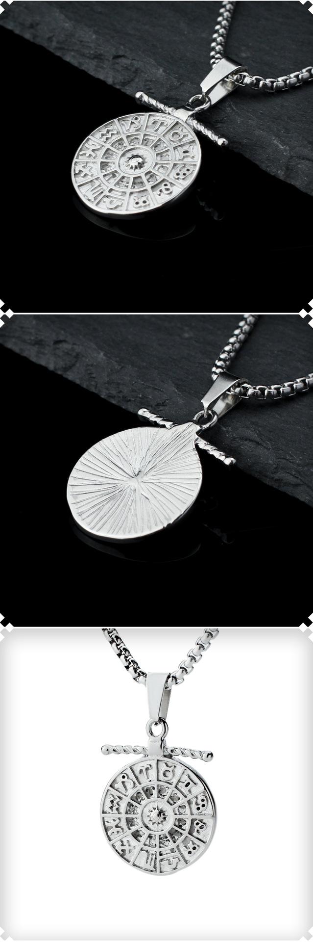 Compra Collar de marca redonda de doce constelaciones de acero de titanio con explosiones transfronterizas, moda europea y americana INS, cadena a juego de acero inoxidable para hombres y mujeres al por mayor en Joom.pro