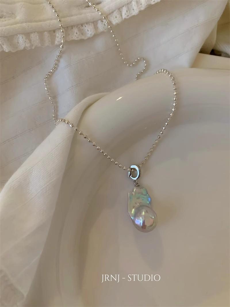 Collar de perlas de agua dulce barrocas de color natural, fuerte y ligero, de plata S925, con nicho francés, joyería delicada de alta calidad.