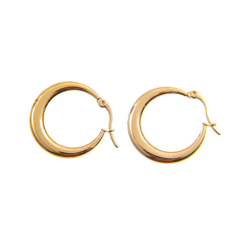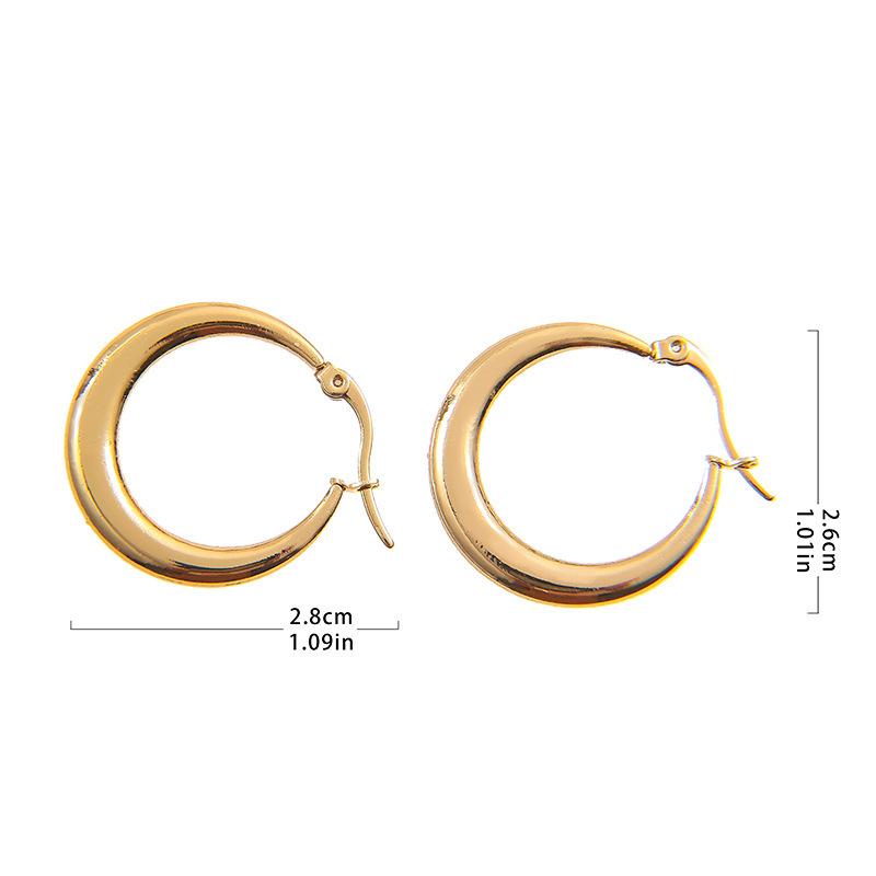 Pendientes clásicos de acero inoxidable con parte trasera redonda de moda europea y americana transfronteriza, pendientes de acero de titanio chapados en oro de 18 quilates.