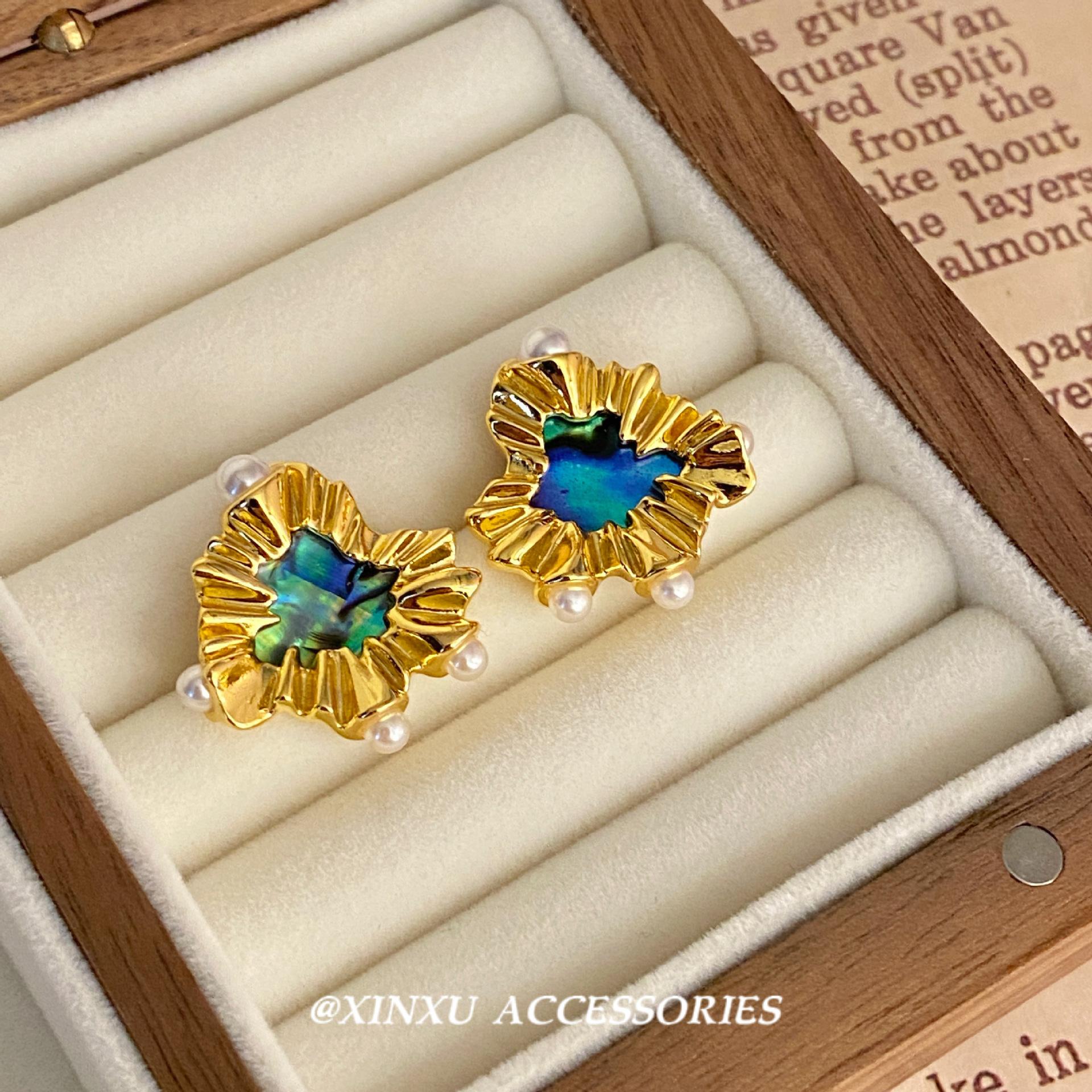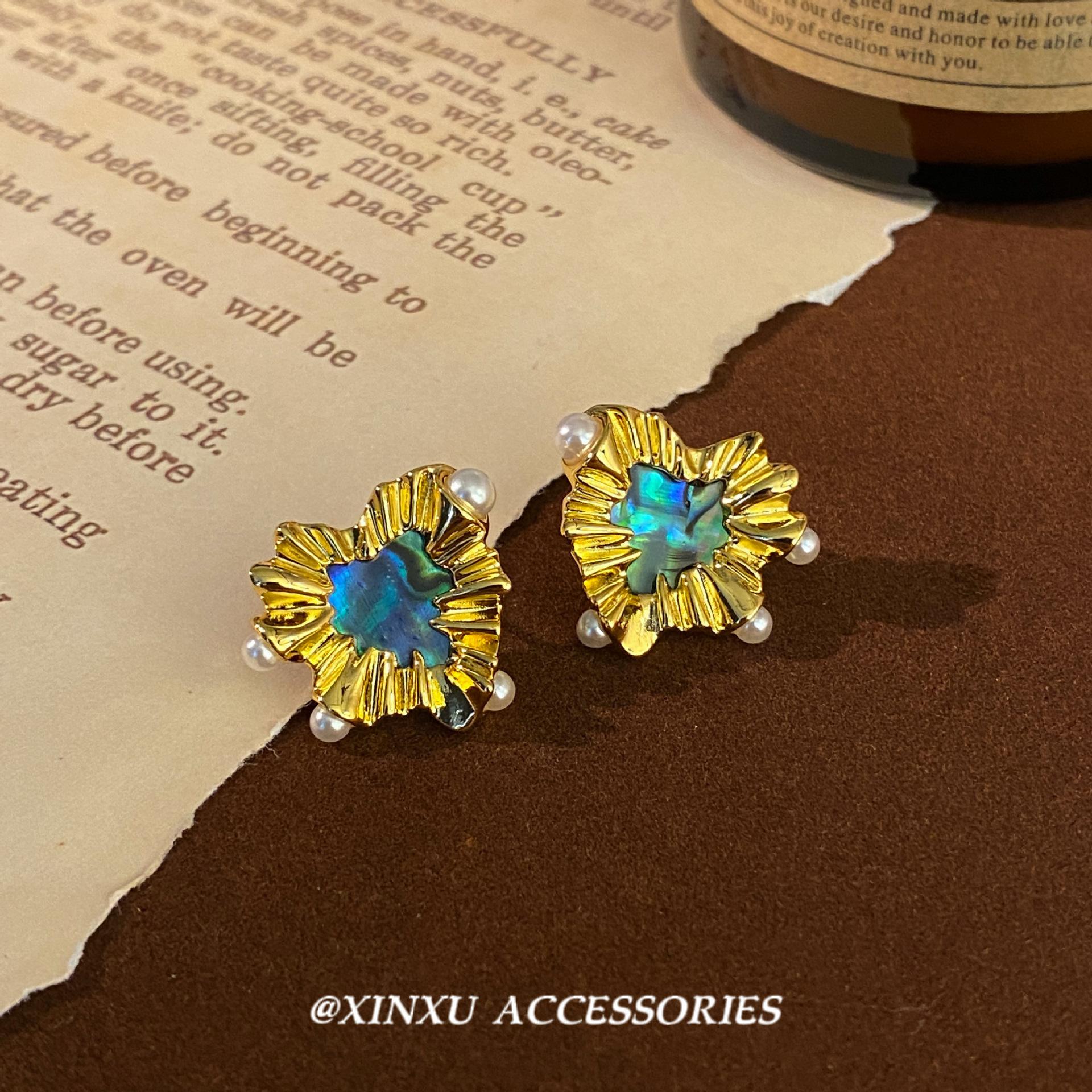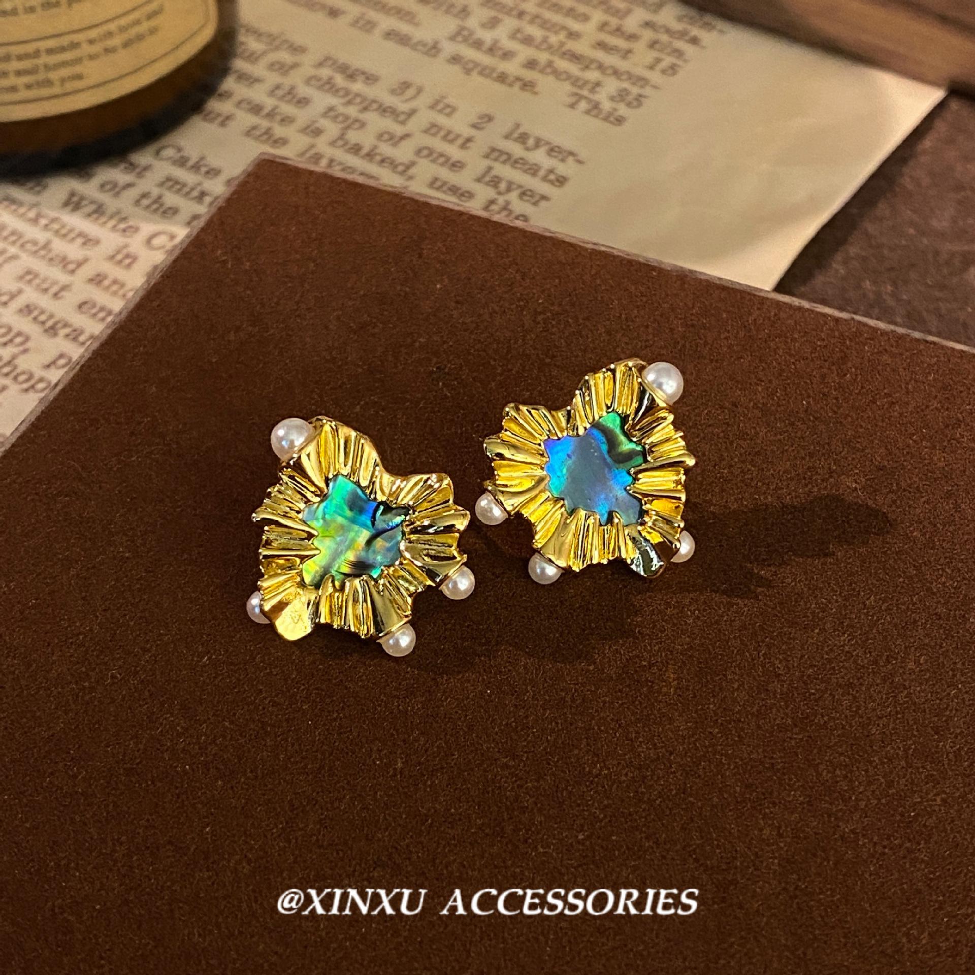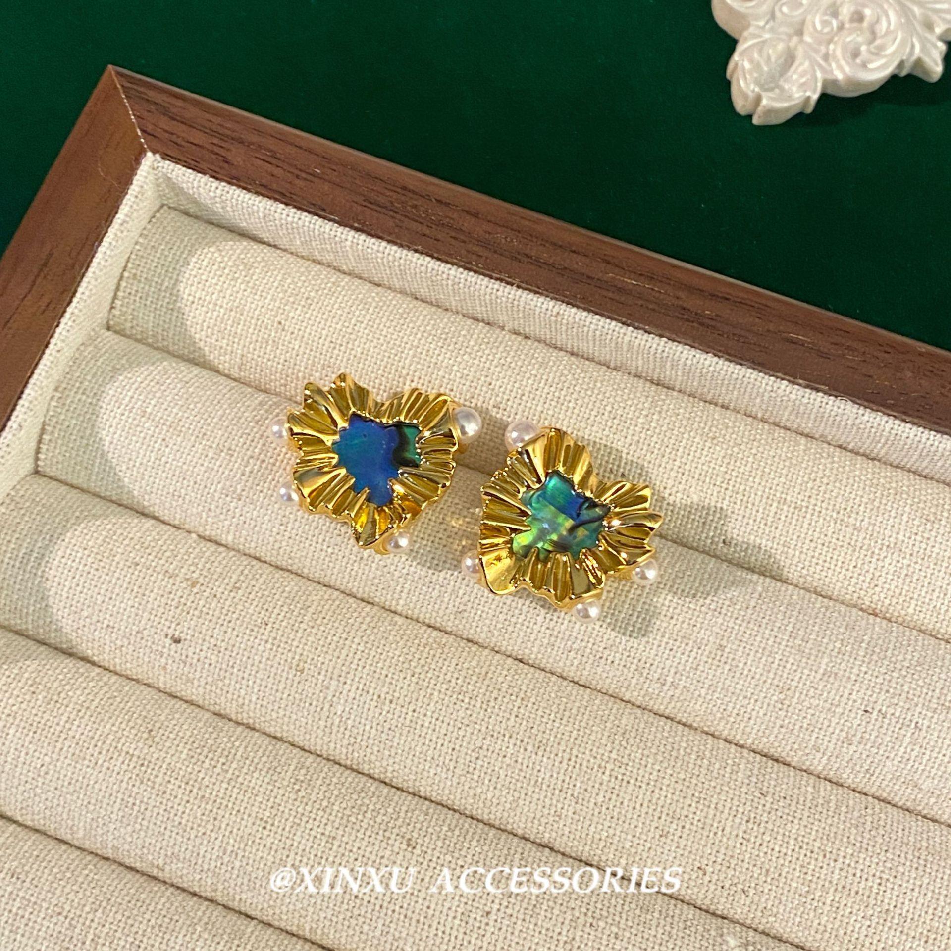 Nuevos pendientes de perlas de amor irregulares de oro, ligeros, de lujo, de alta gama, elegantes, vintage, de nicho, únicos.