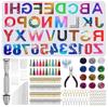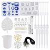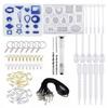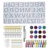 El set incluye: molde de silicona para letras * 1, taladro manual de alta calidad * 1, brocas * 10, remaches de garra de 10 mm * 100, argollas abiertas de 8 mm * 20, llaveros * 20, colgantes de borla * 20 (2 de cada uno de los 10 colores como se muestra en la imagen)