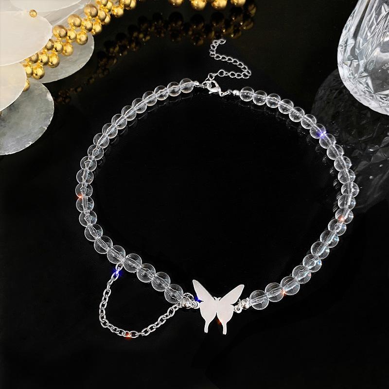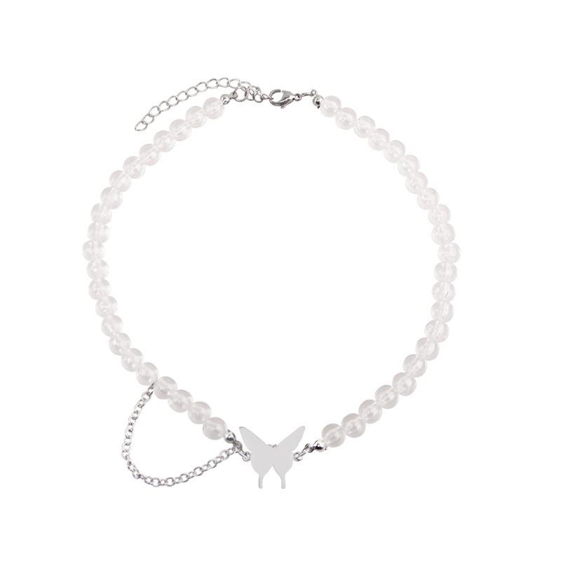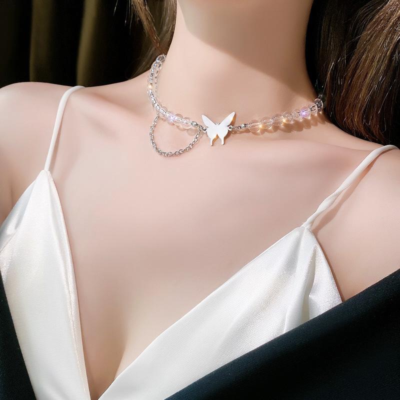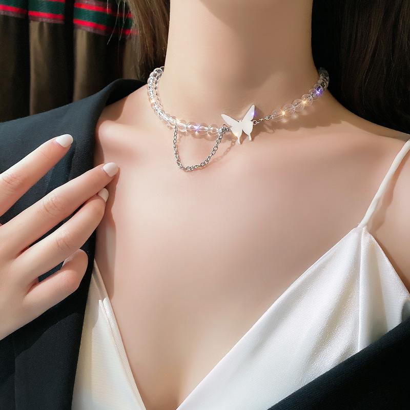 Collar de mujer con estilo moderno, cadena de bola, elegante gargantilla de mariposa, cadena de clavícula, collar corto, cadena de diseño de nicho para mujer.