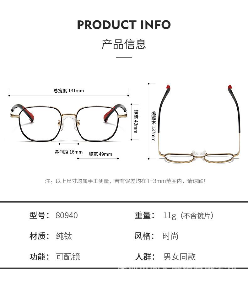 Nuevo armazón de gafas juvenil 80940 moda retro cuadrado montura completa titanio puro con armazón para gafas de miopía al por mayor