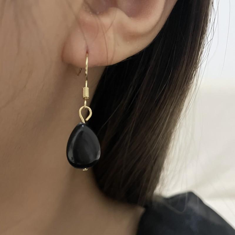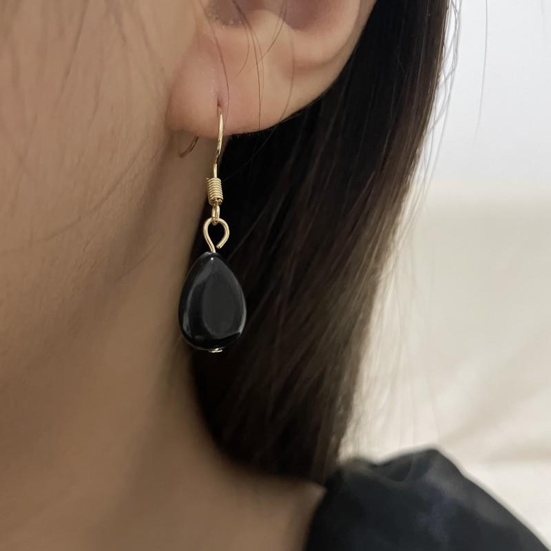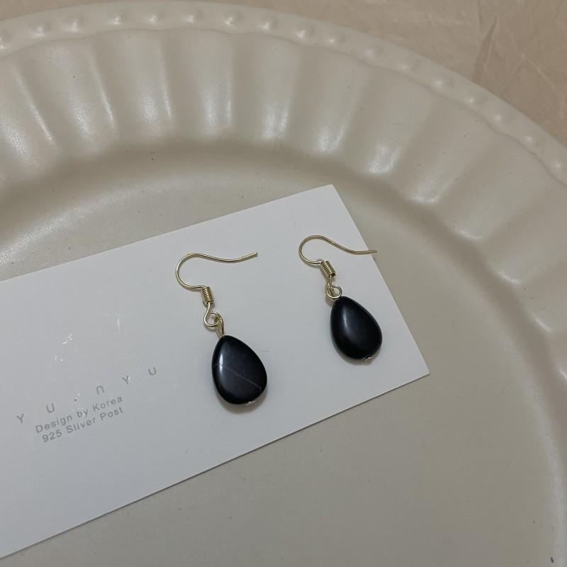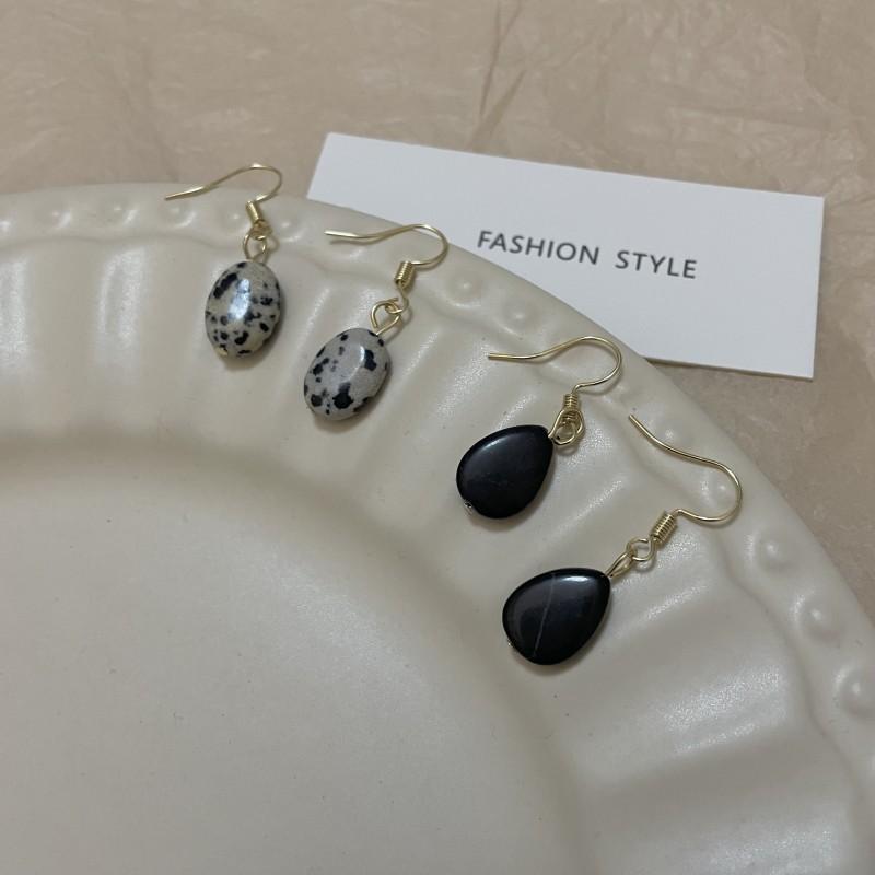 Exquisitos y elegantes pendientes con gancho para la oreja geométrico de piedra natural retro para mujer, nuevos pendientes de diseño de nicho simple de alta calidad.