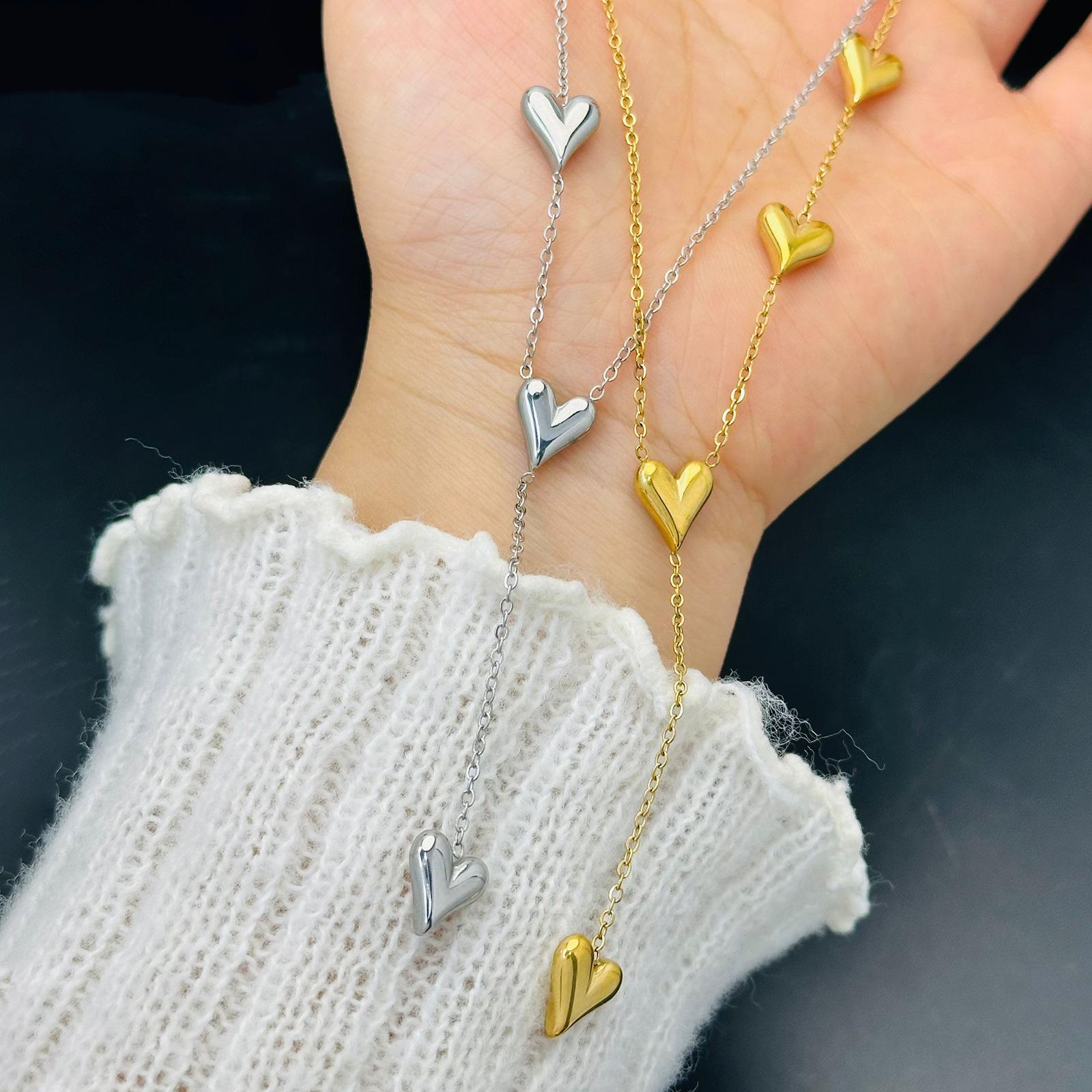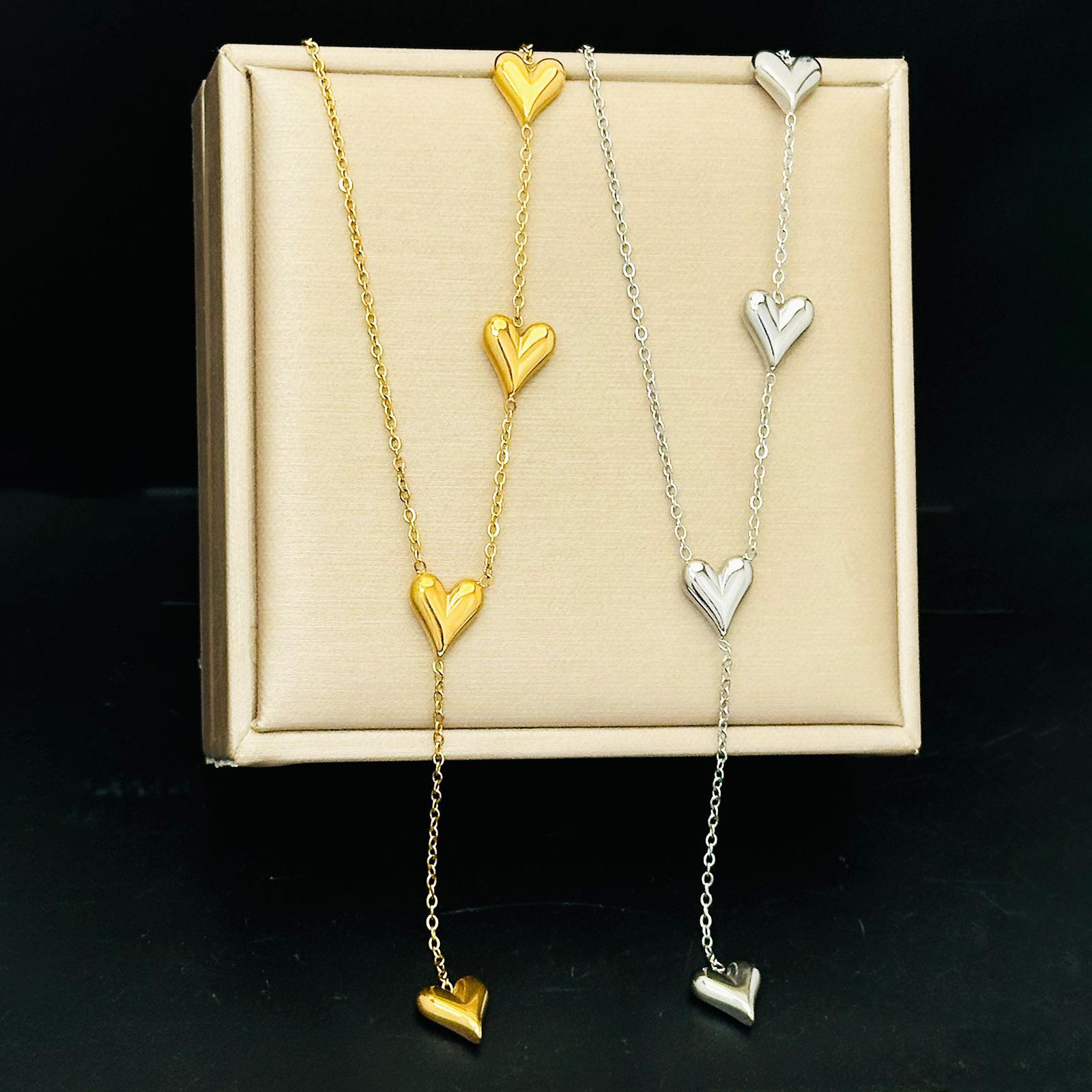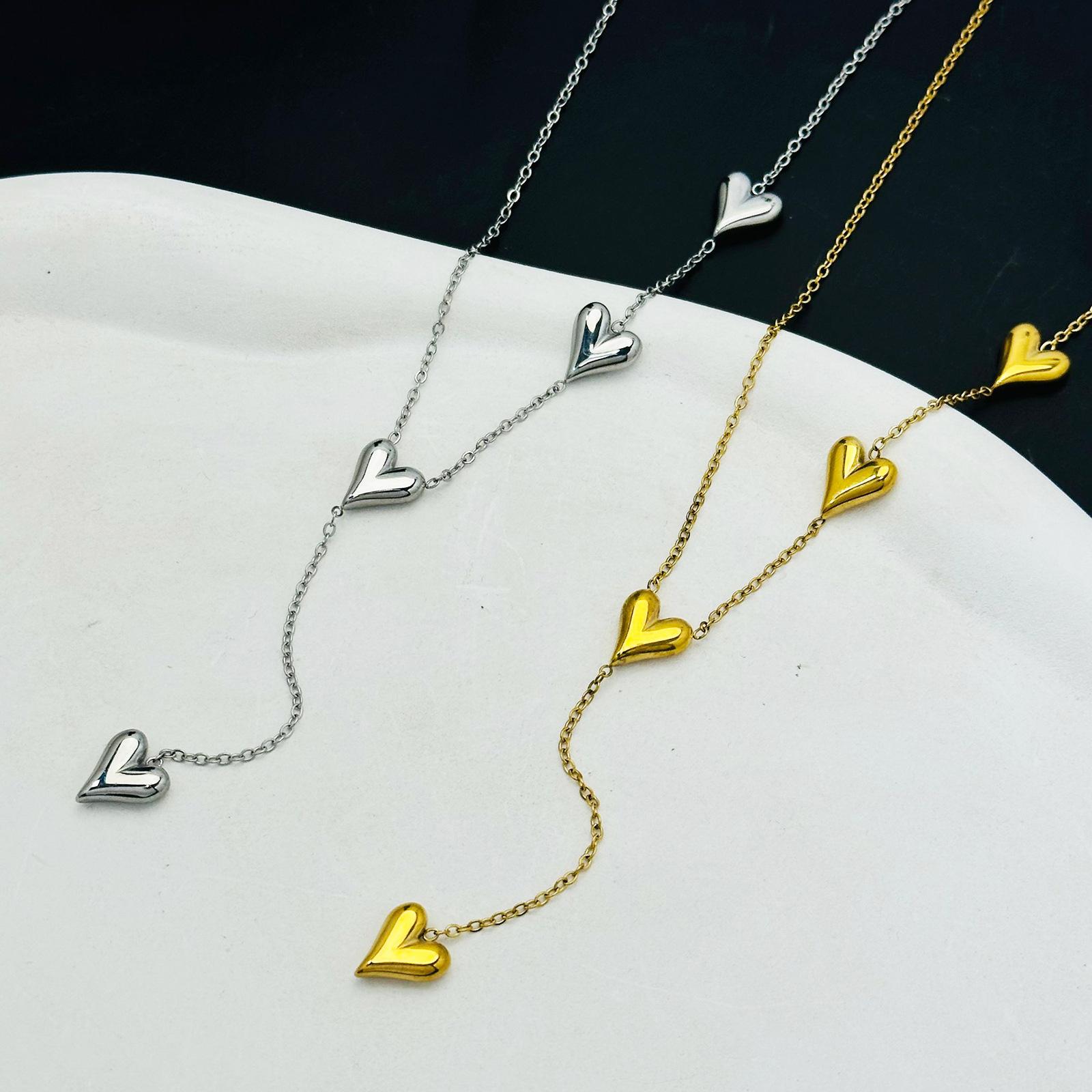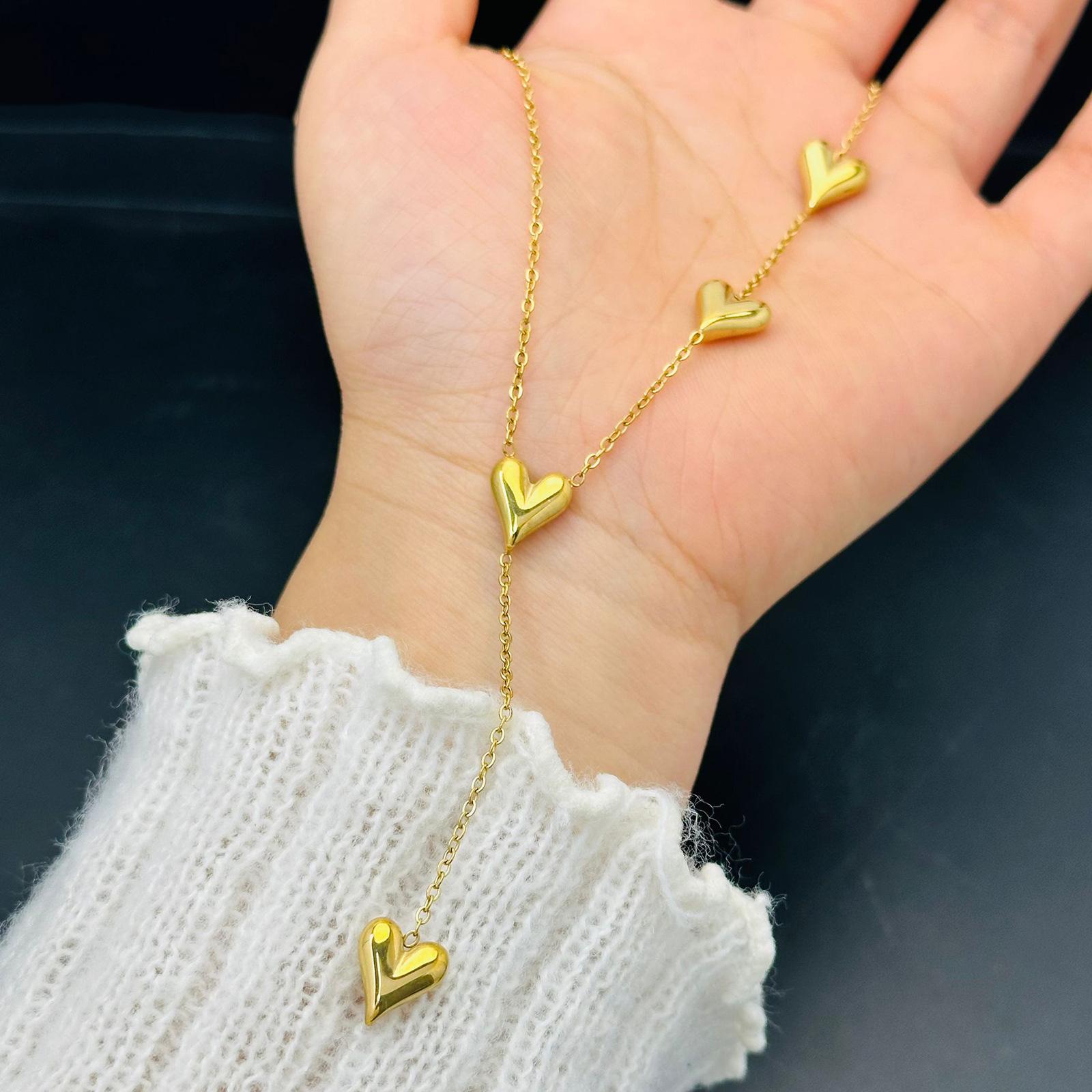 Cadena de clavícula de acero de titanio con temperamento de moda de alta gama con corazón de amor, lujo, oro de 18 quilates, sin decoloración, para mujer