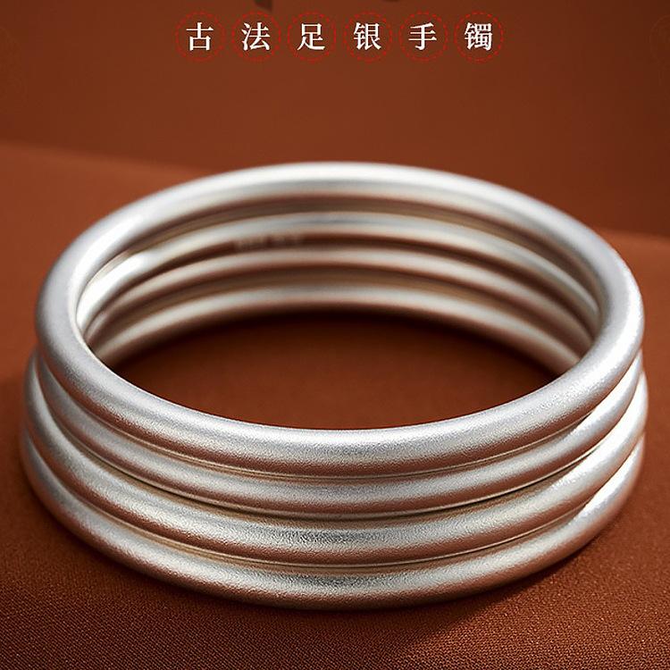 Pulsera de plata esterlina antigua, anillo liso esmerilado, pulsera plateada de cobre 999, herencia femenina sólida, TikTok, mano rápida, en vivo, caliente