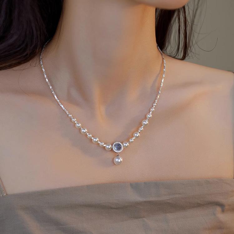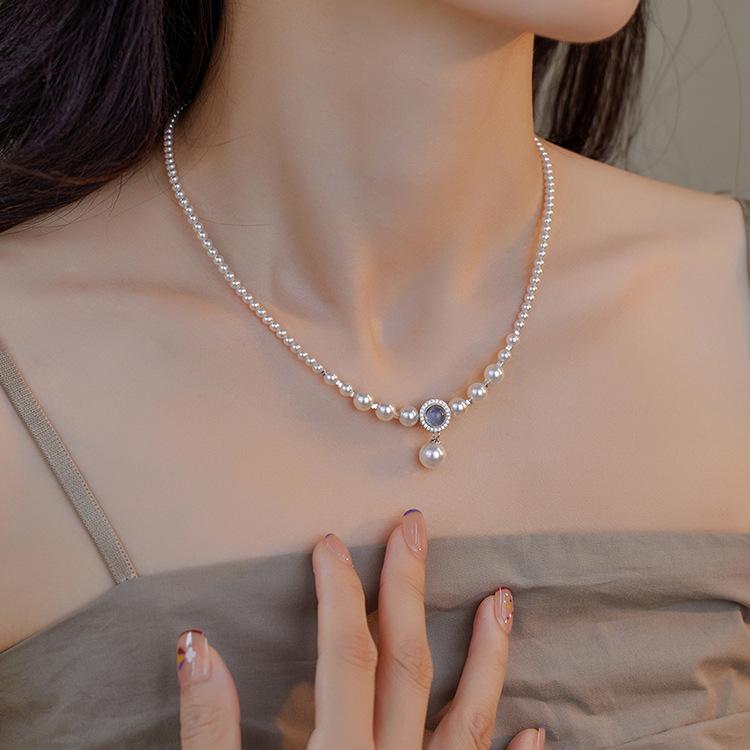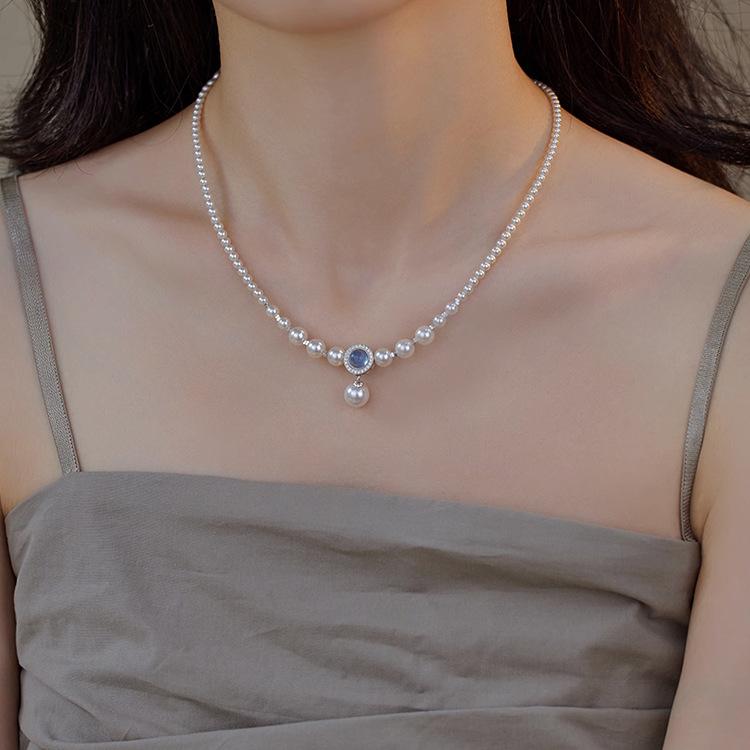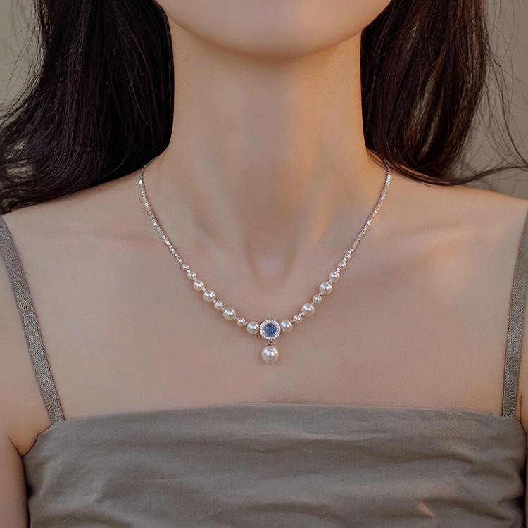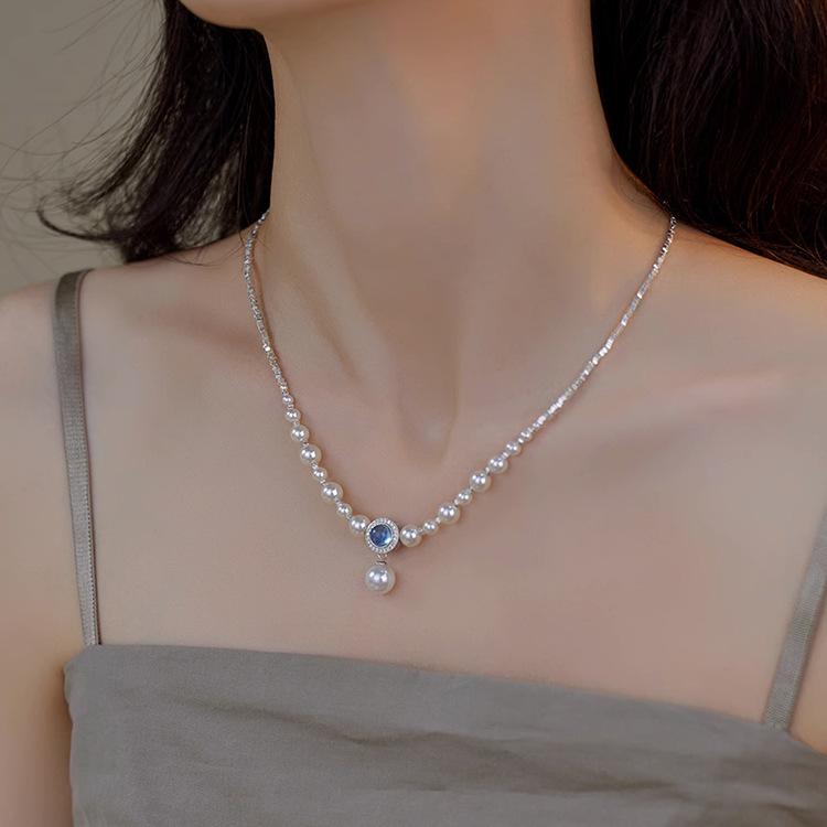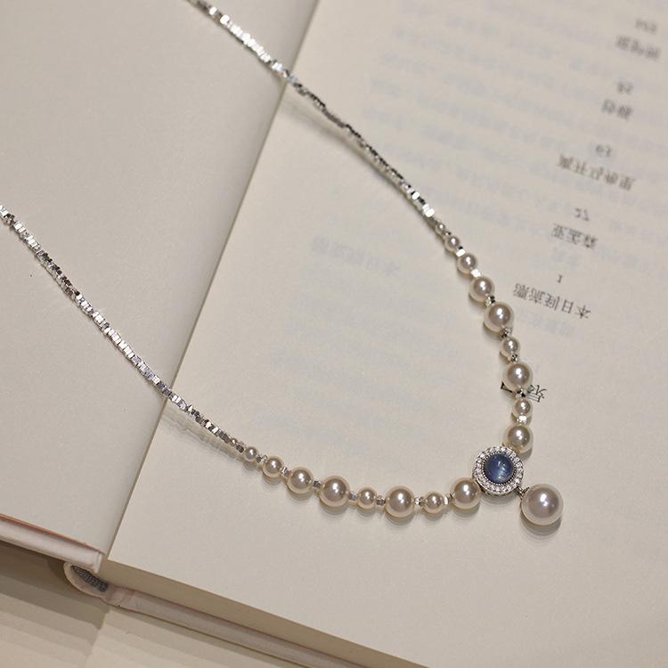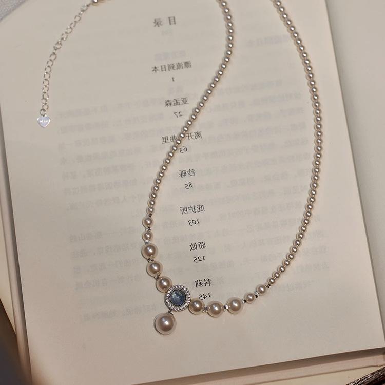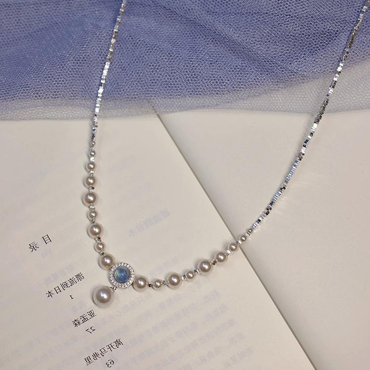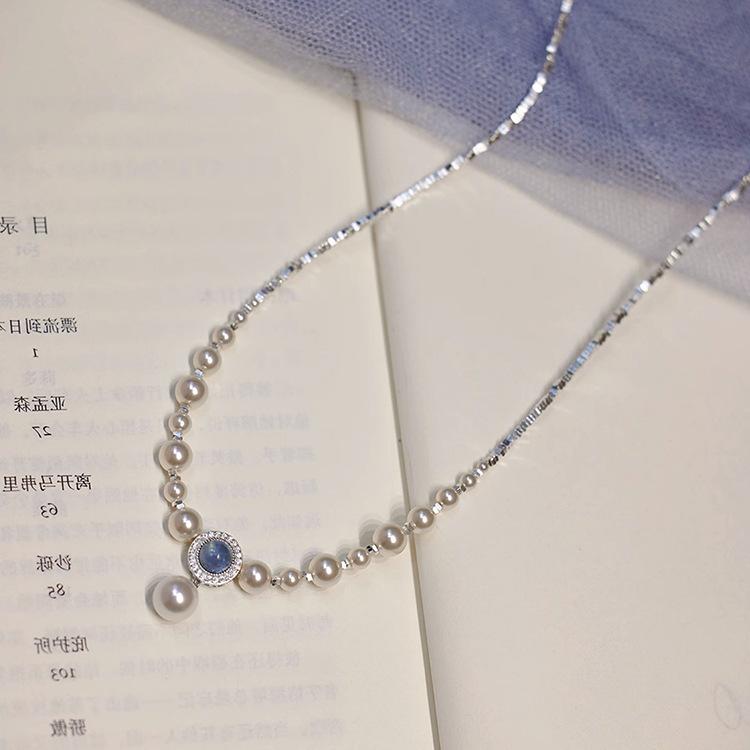 Collar de plata rota con perla de ópalo azul, diseño de nicho femenino, personalidad retro, collar simple que combina con todo, cadena de clavícula