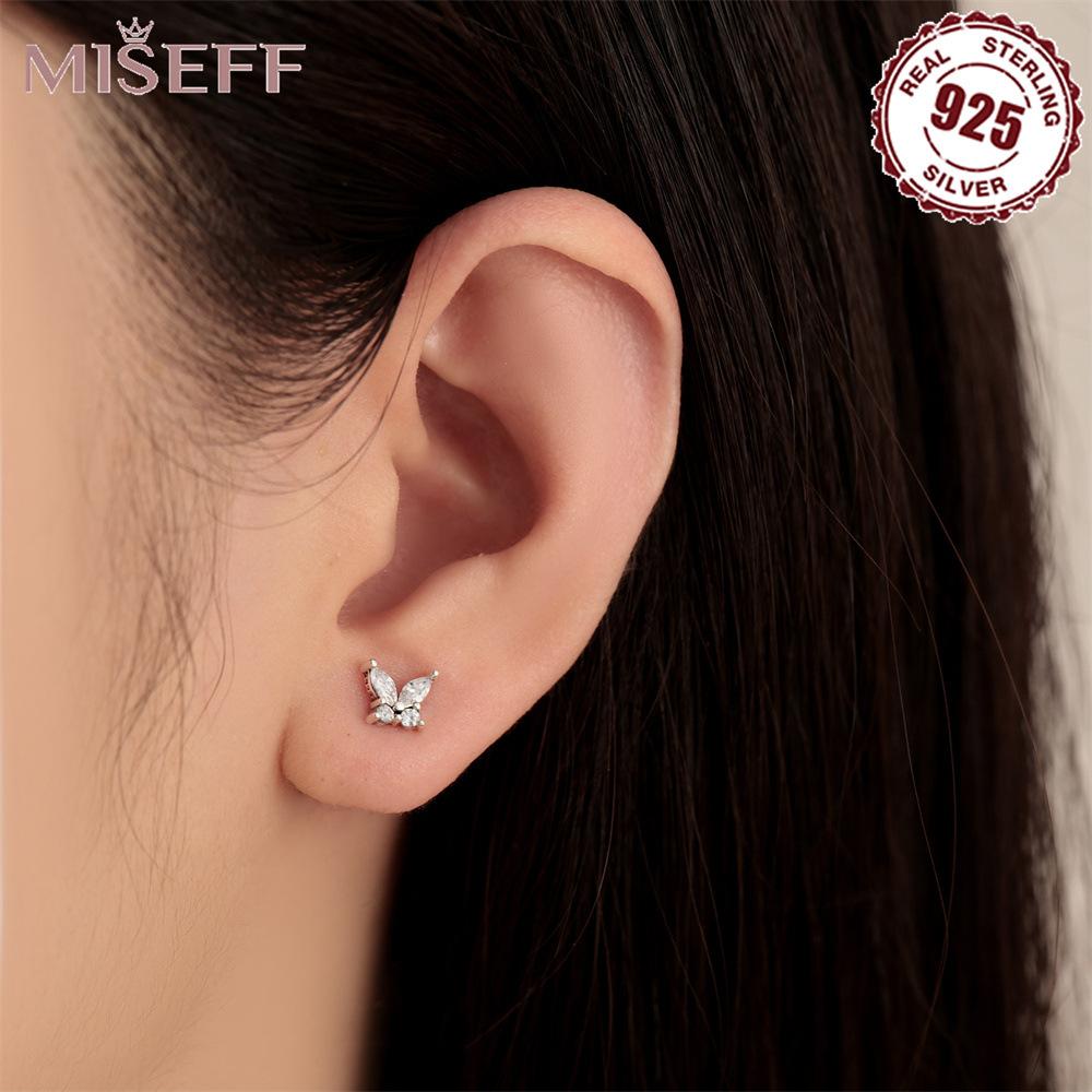Populares Transfronterizos Pendientes Perforados de Plata Esterlina S925 con Piedra y Mariposa Pendientes de Exportación Europeos y Americanos Venta al por Mayor para Mujeres