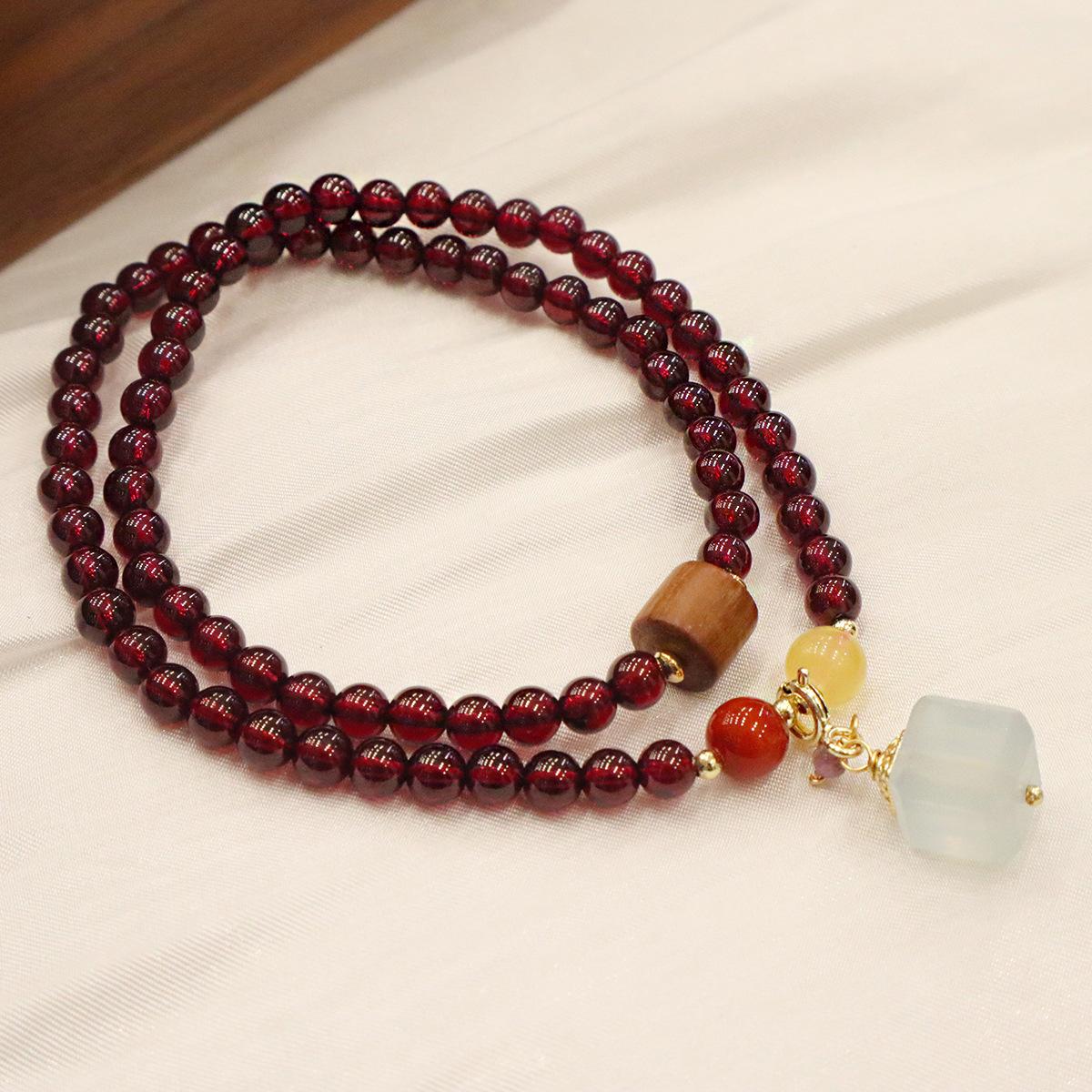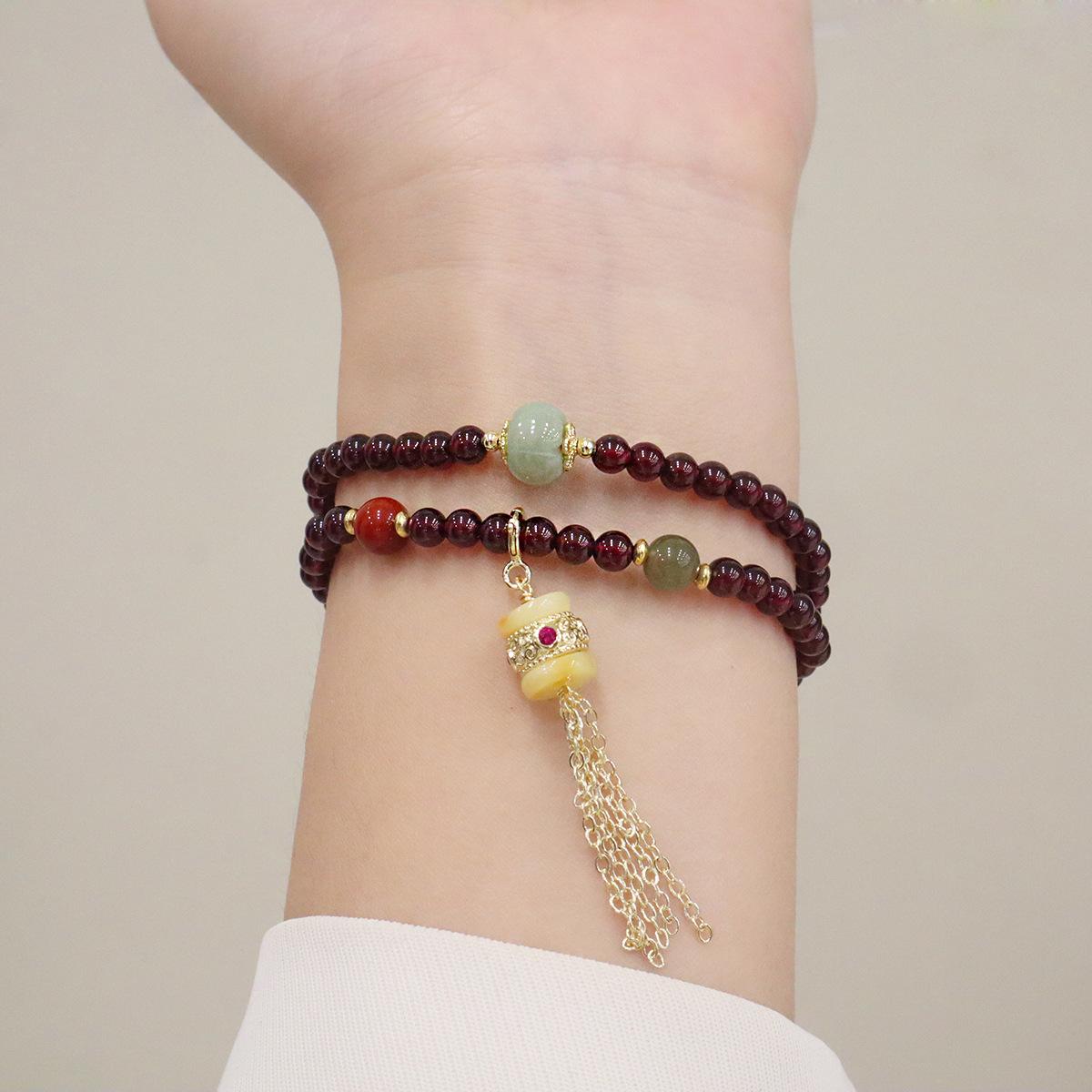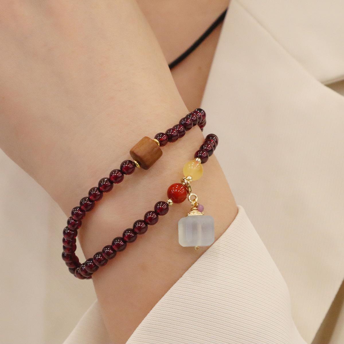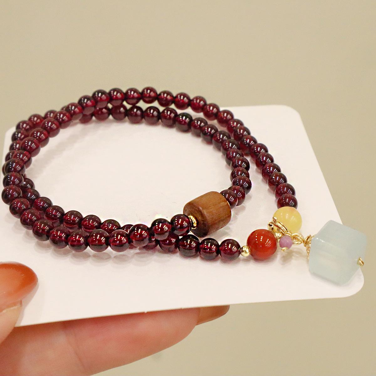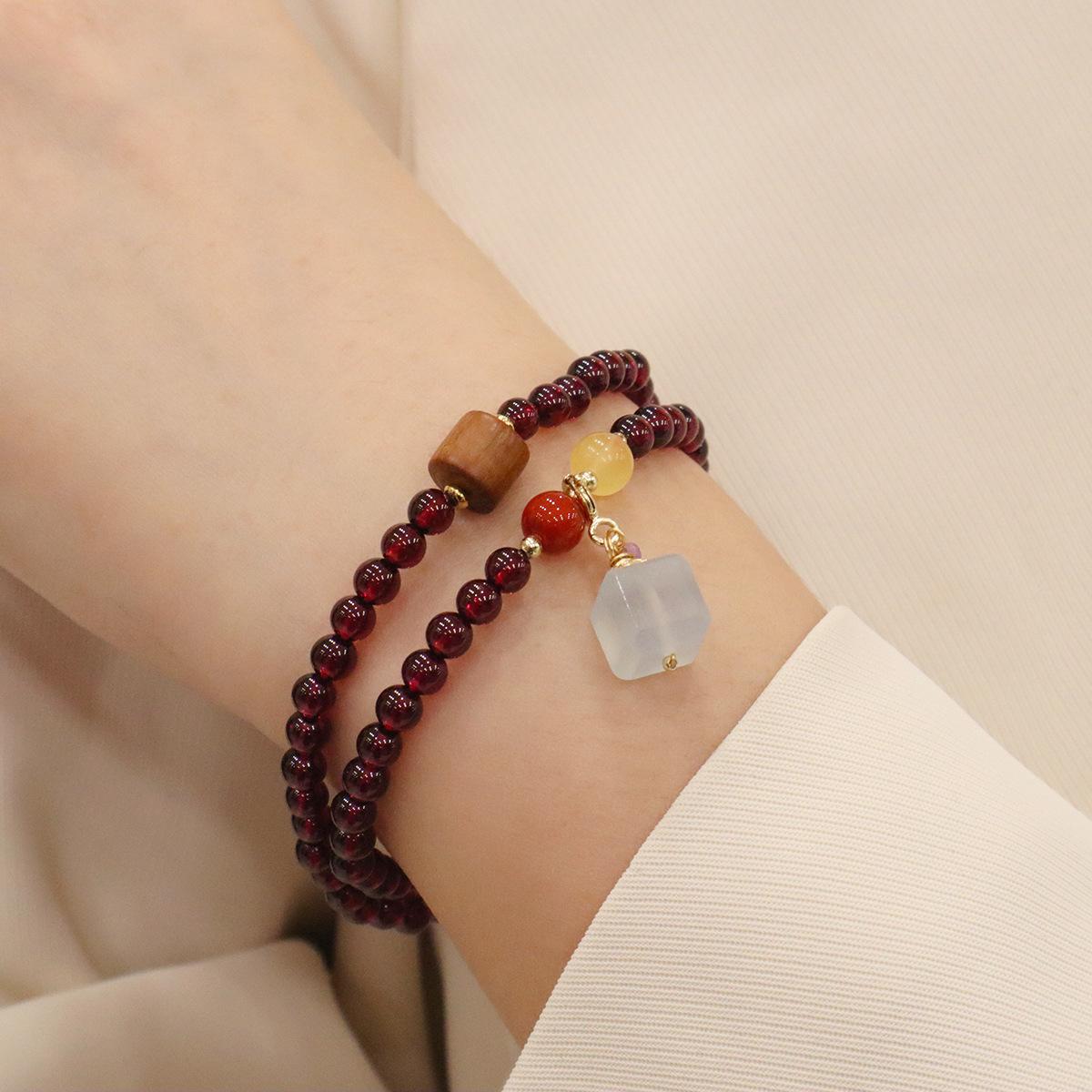 Pulsera de granate de doble anillo natural, pulsera de aguamarina cuadrada de azúcar, cuentas de cera de abeja, pulsera DIY, estilo nacional, estilo simple, joyería