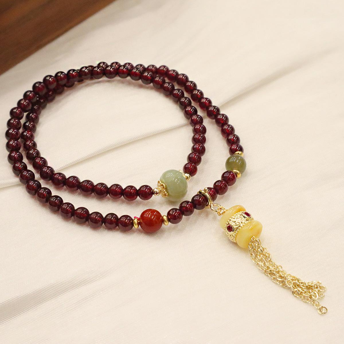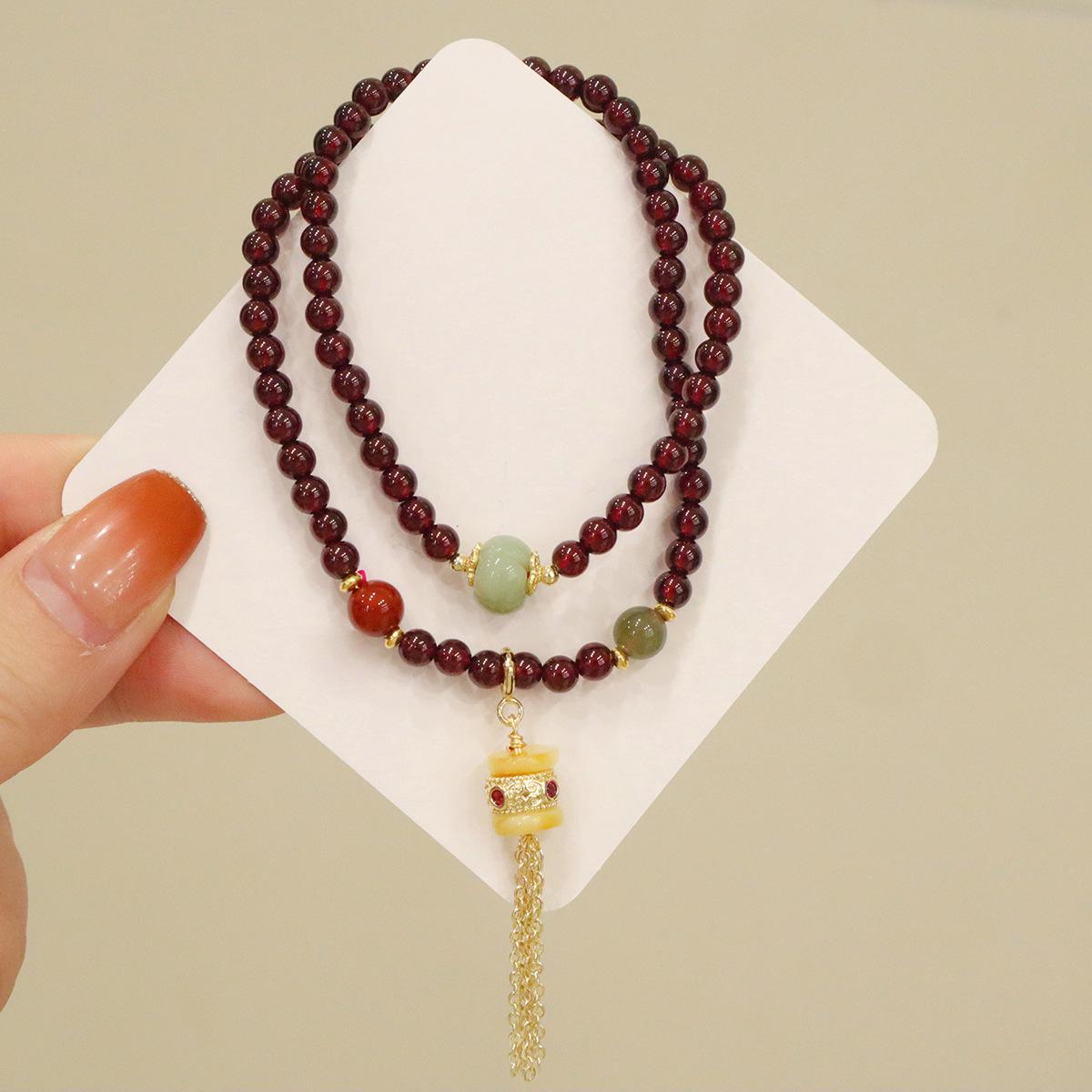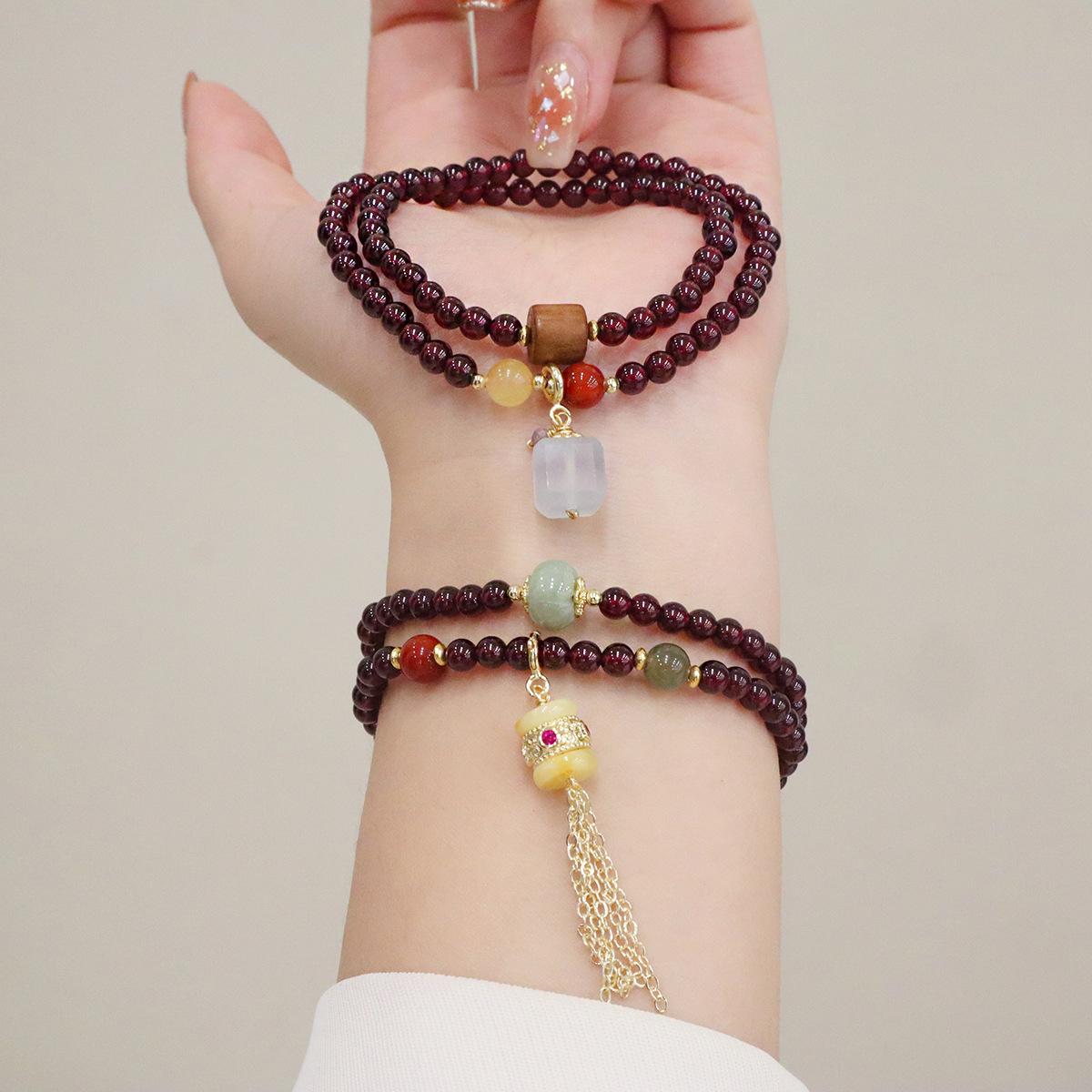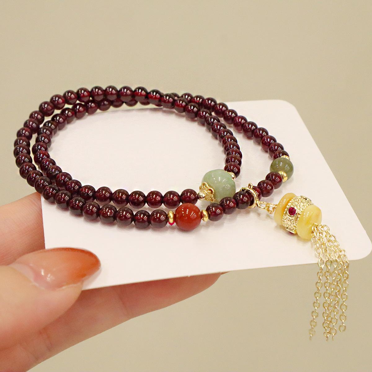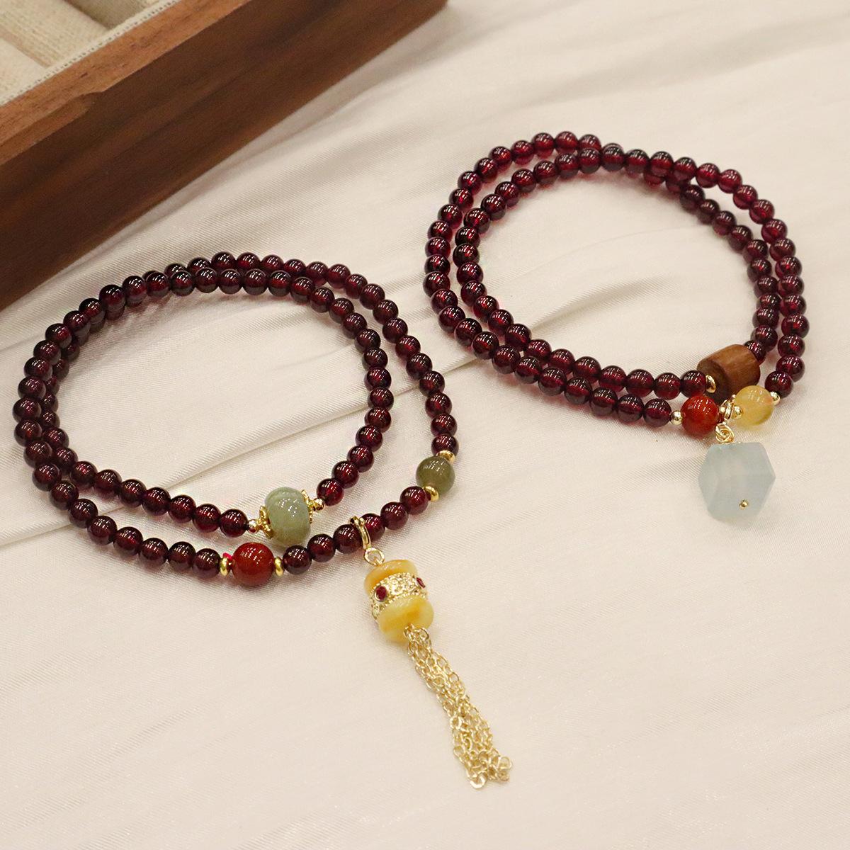Pulsera de granate de doble anillo natural, pulsera de aguamarina cuadrada de azúcar, cuentas de cera de abeja, pulsera DIY, estilo nacional, estilo simple, joyería
