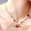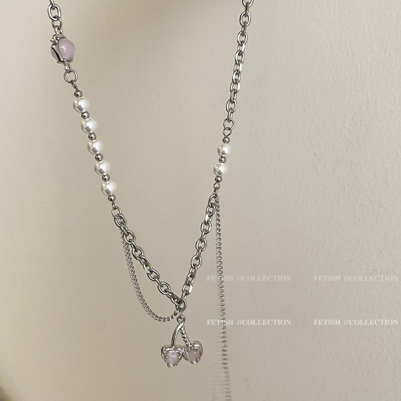 Collar con colgante de cereza y costuras de metal perlado para mujer, estilo dulce y moderno, pendientes de cadena para clavícula.