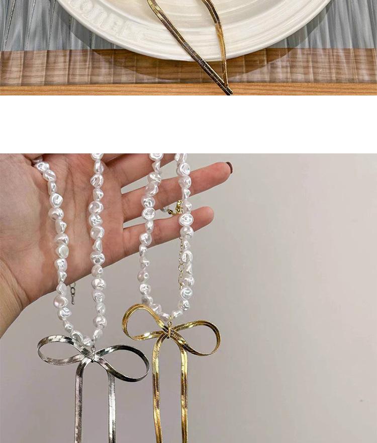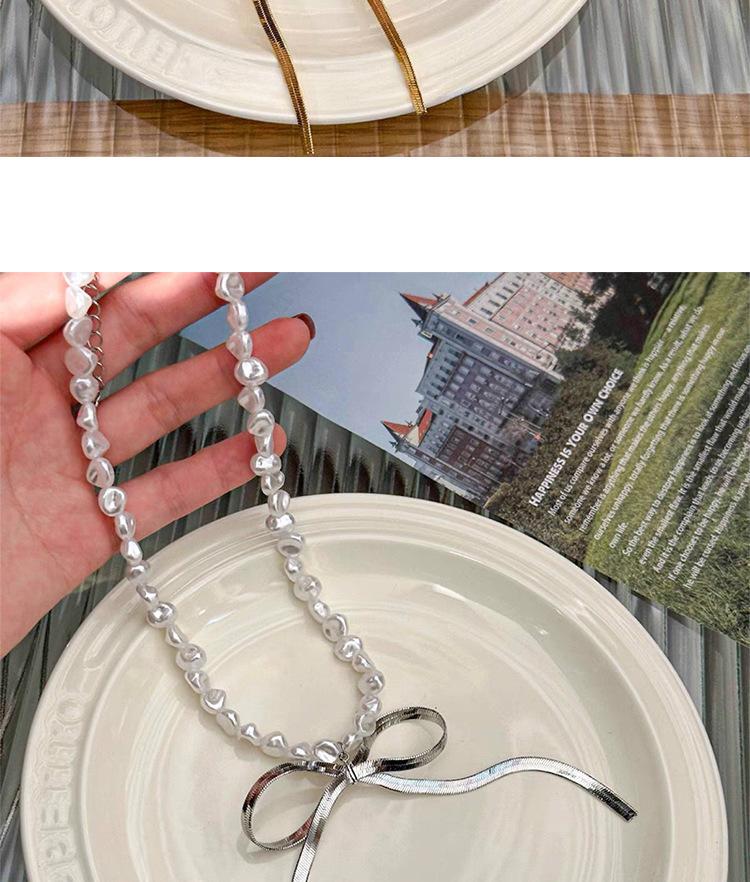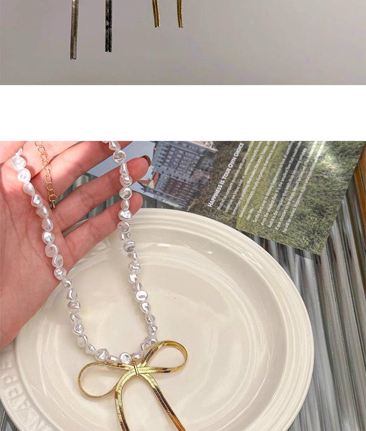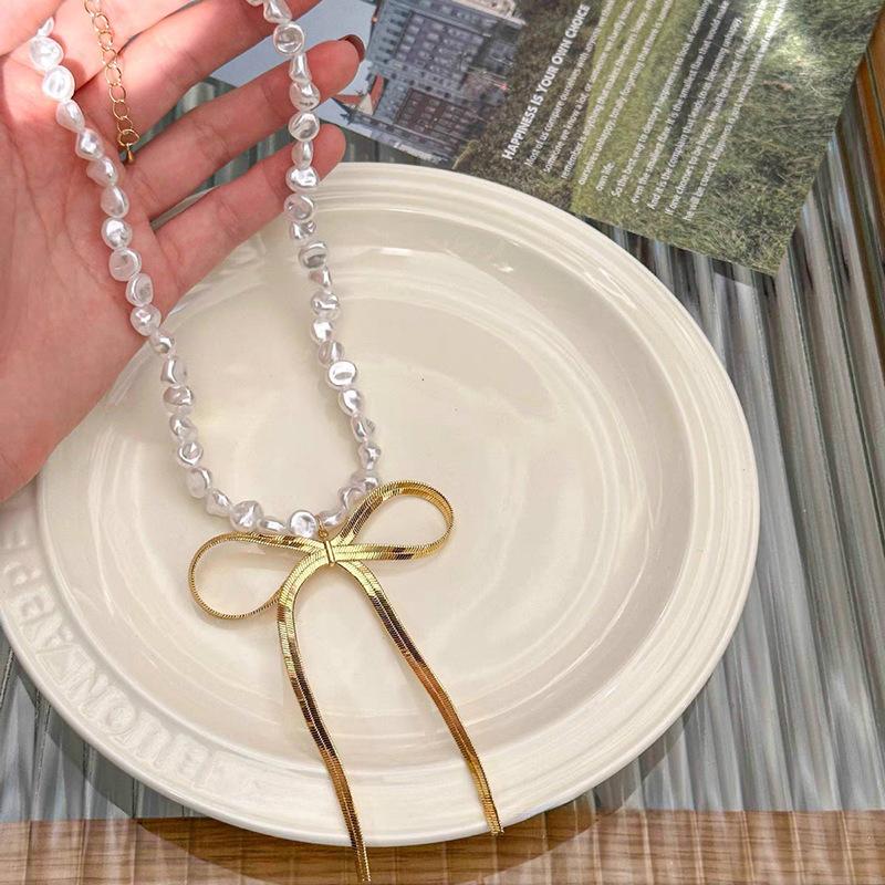 Collar de perlas irregulares simple, cadena de clavícula con lazo de alta gama, collar con diseño de temperamento de nicho