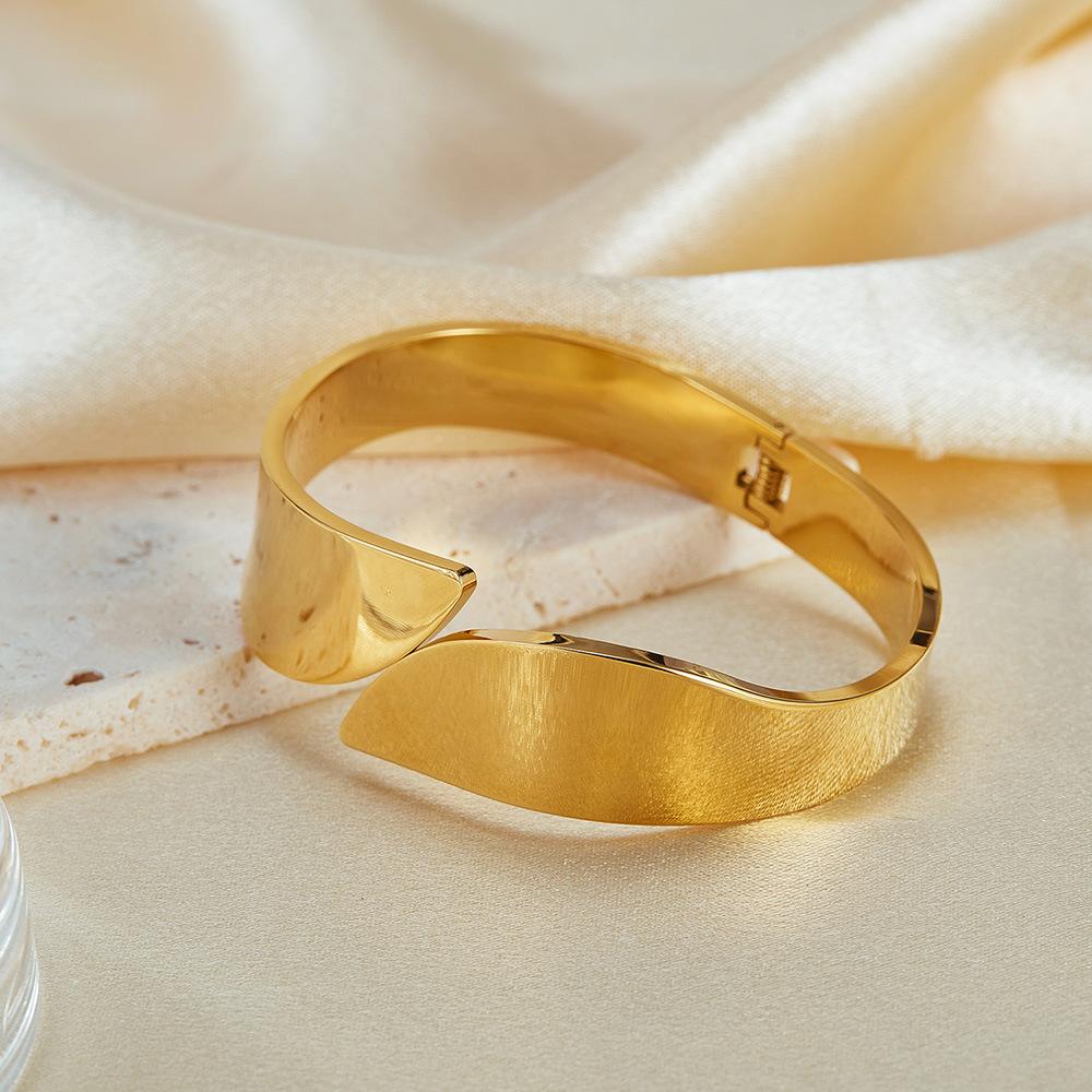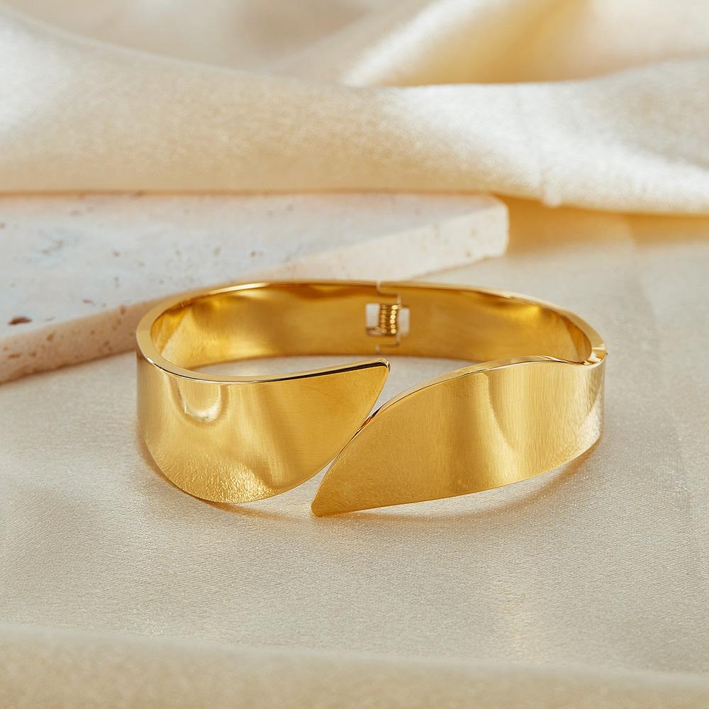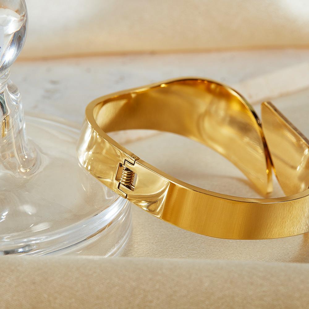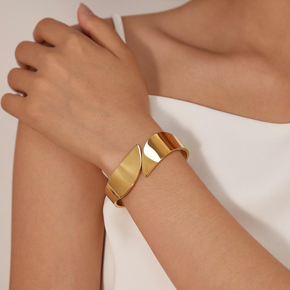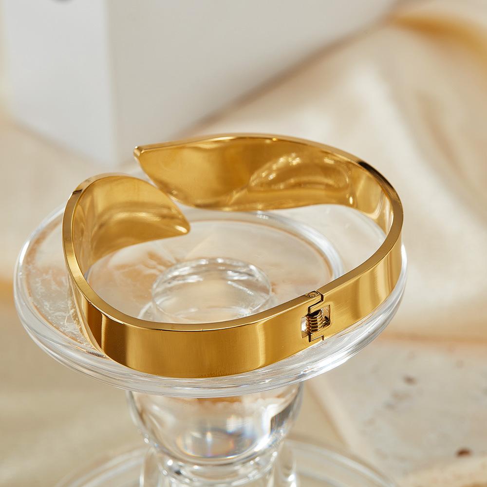 Pulsera de acero de titanio de venta caliente transfronteriza Europa y Estados Unidos joyería para mujer chapada en oro pulsera abierta lisa personalidad combinable acero inoxidable