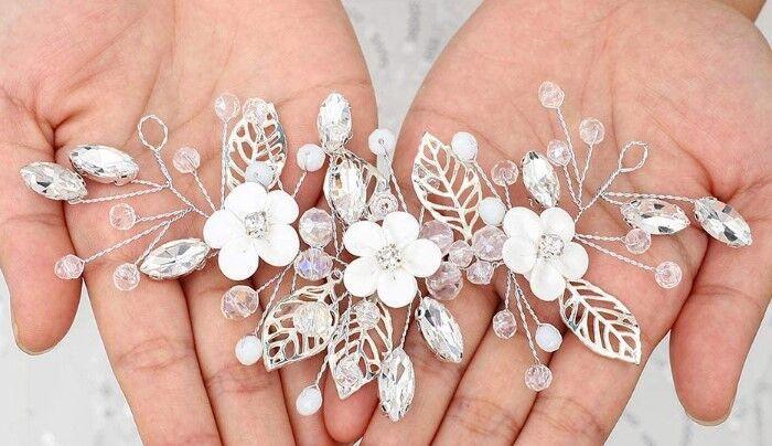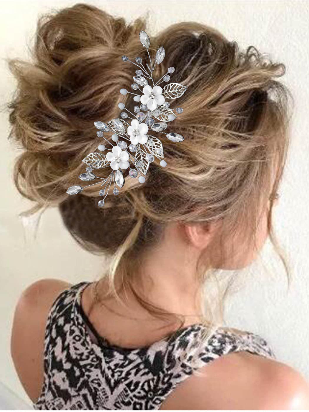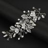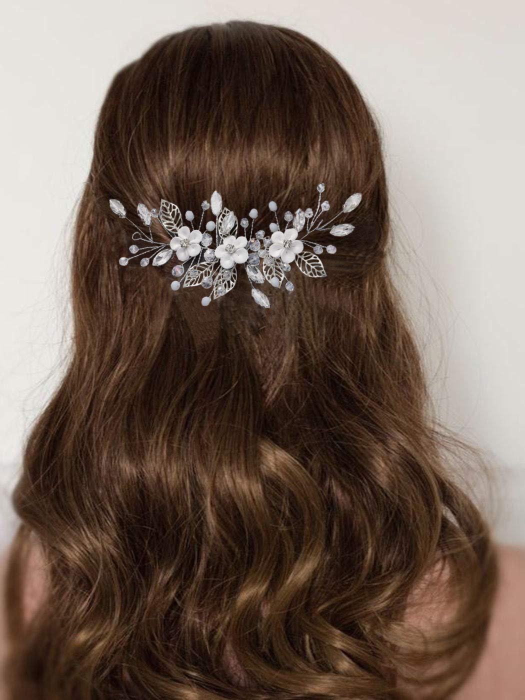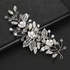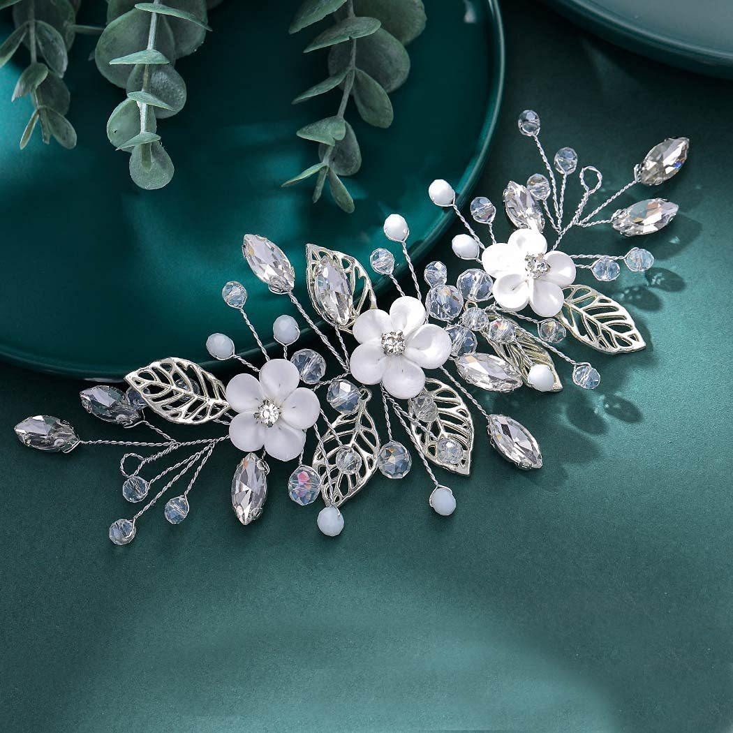 Accesorios para el Cabello de Boda Nupcial Hoja Plateada Flor Blanca Borde Cruzado Hecho a Mano Tocado Perla Cristal Flor