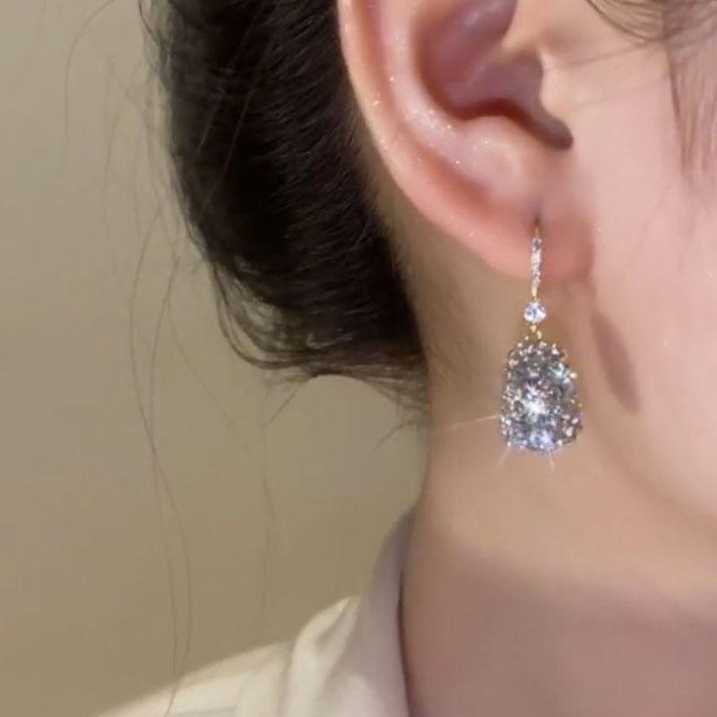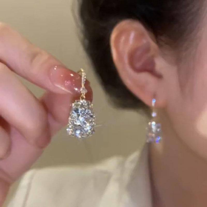 Pendientes rectangulares de diamantes exquisitos de alta calidad y lujo ligero 2023, nuevos pendientes geométricos de temperamento elegante francés
