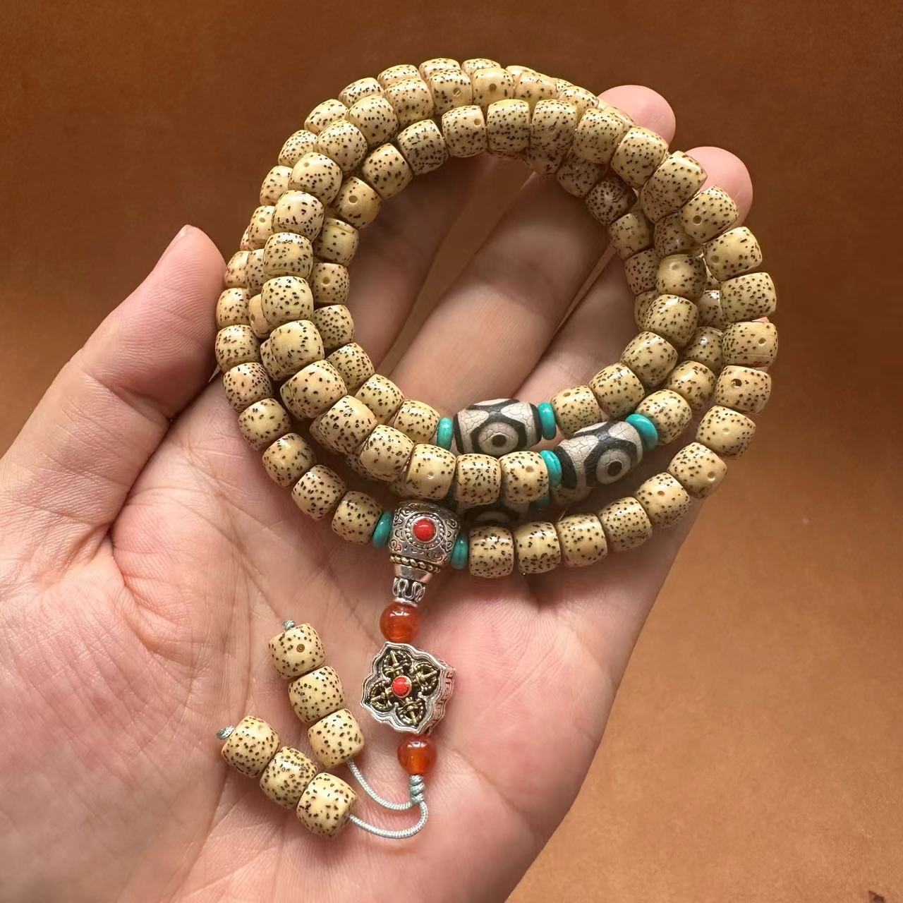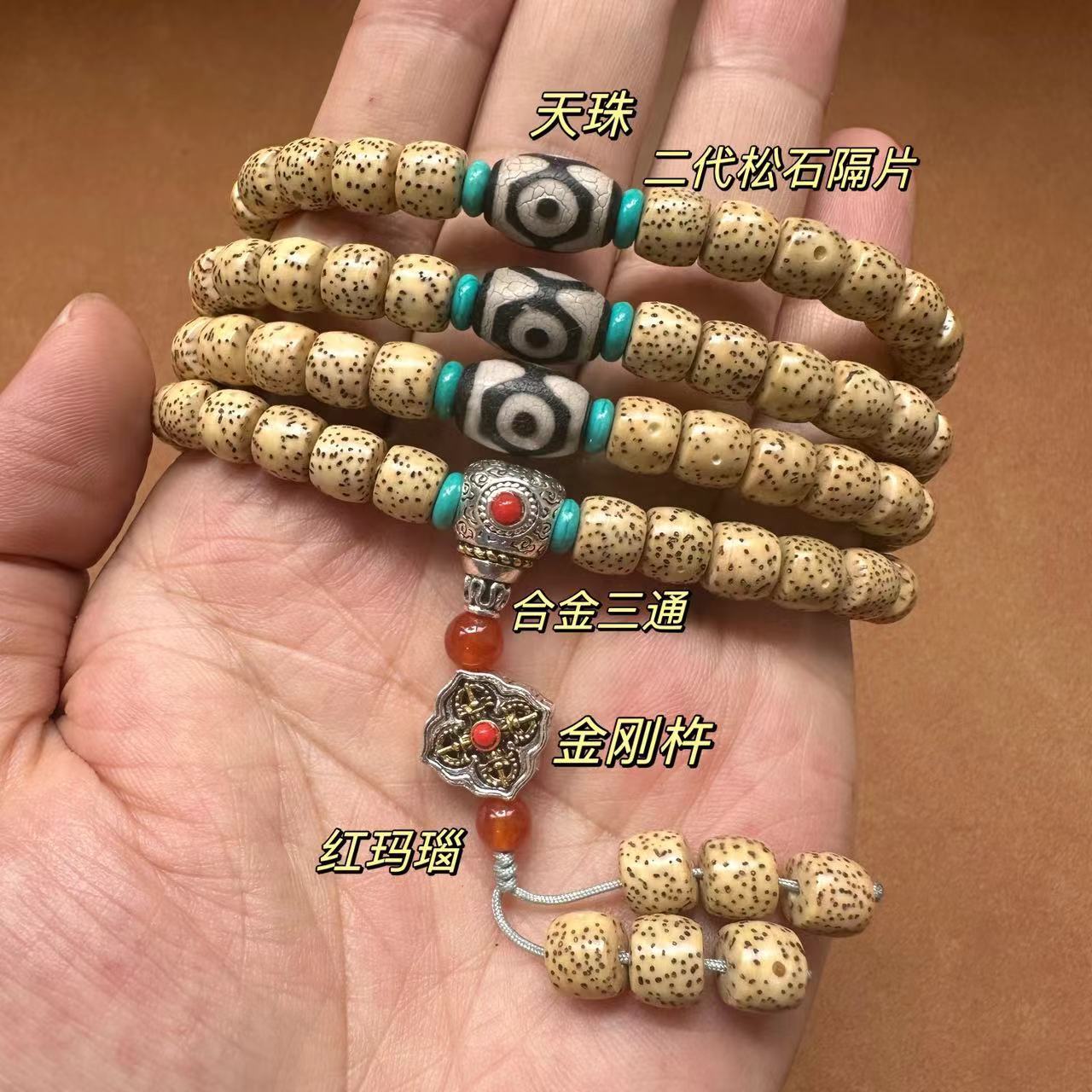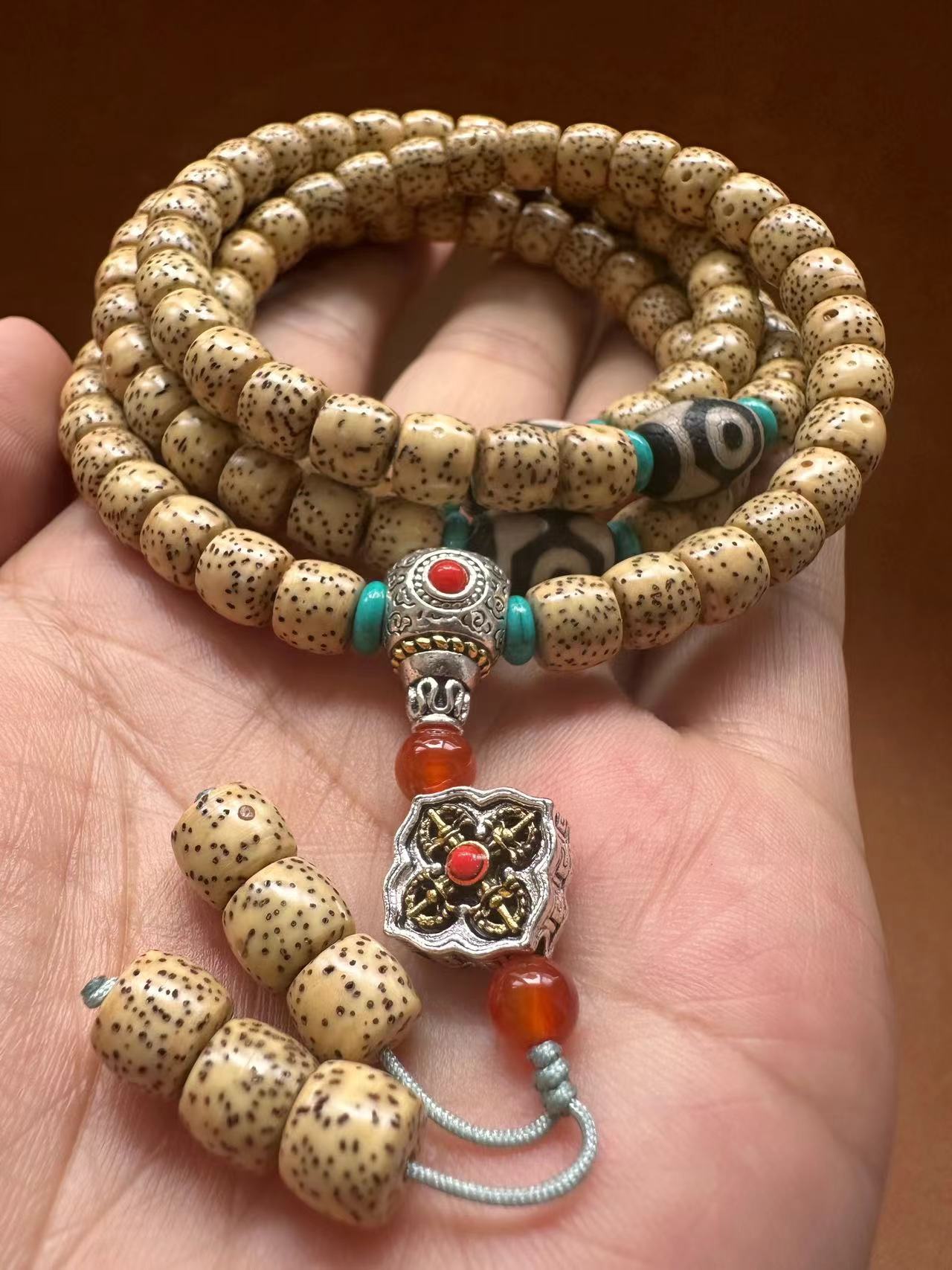 7x8x108 original ecological chicken fat yellow star moon bodhi plus dzi bead hanging vajra, 7x8x108 original e...