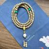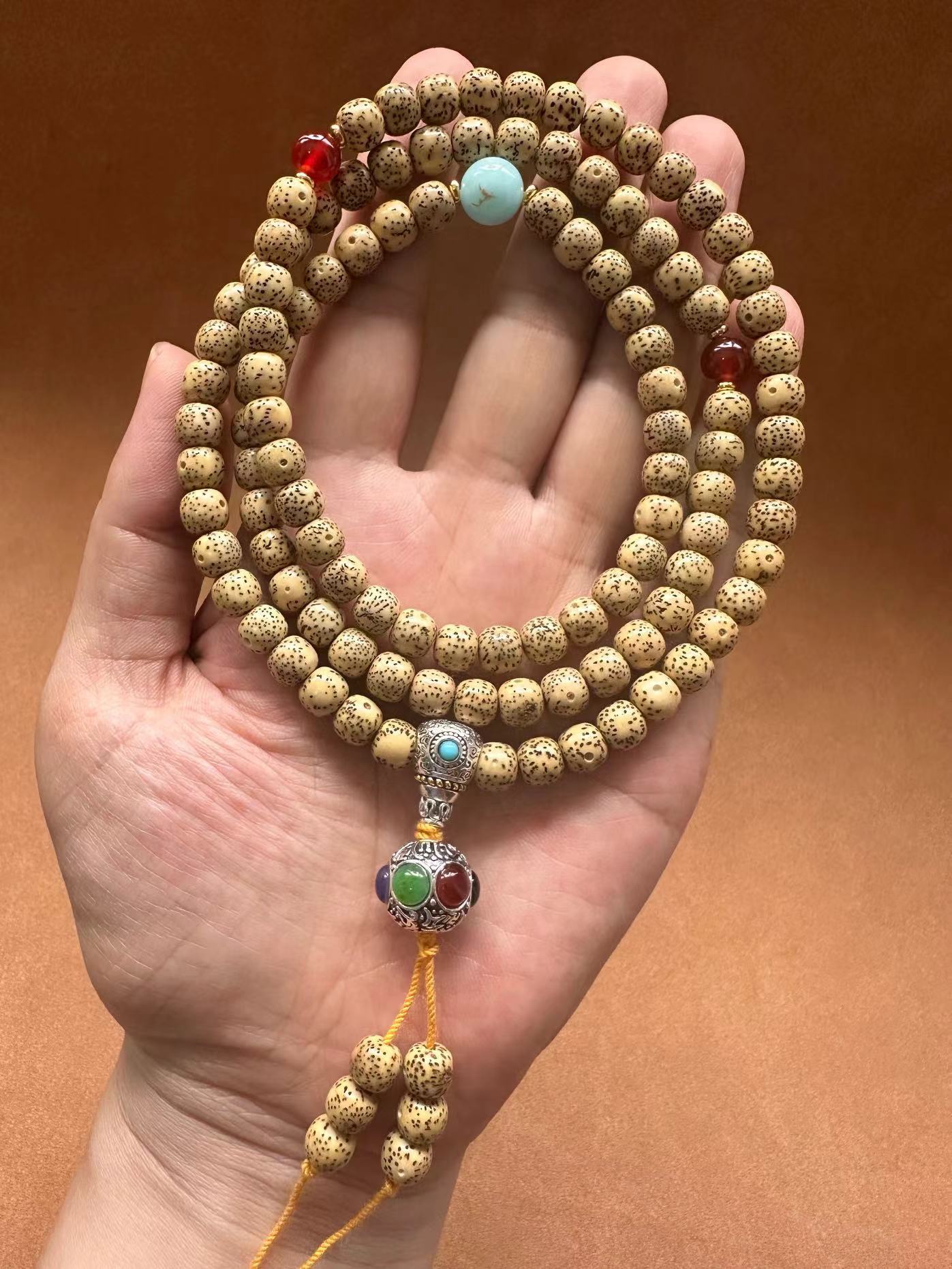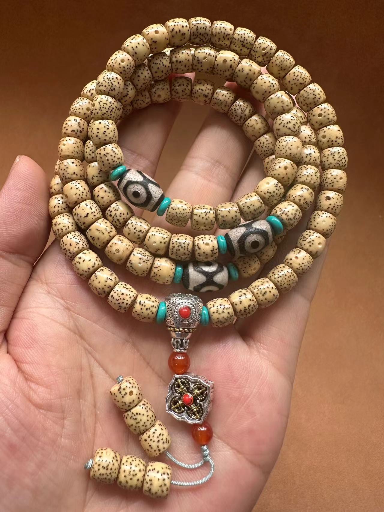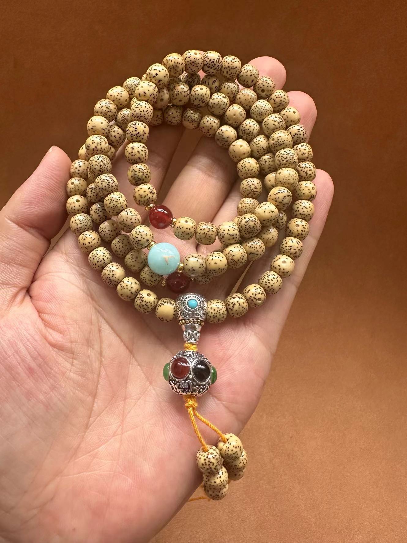 7x8x108 original ecological chicken fat yellow star moon bodhi plus dzi bead hanging vajra, 7x8x108 original e...