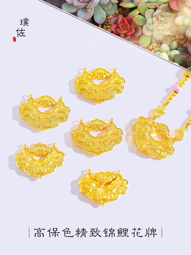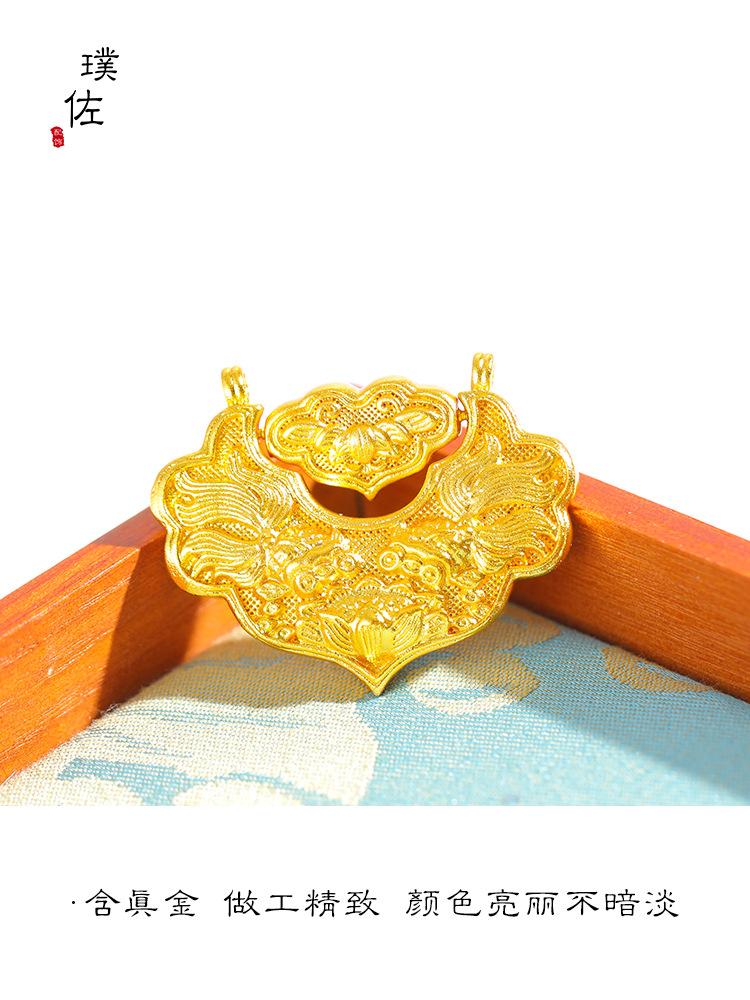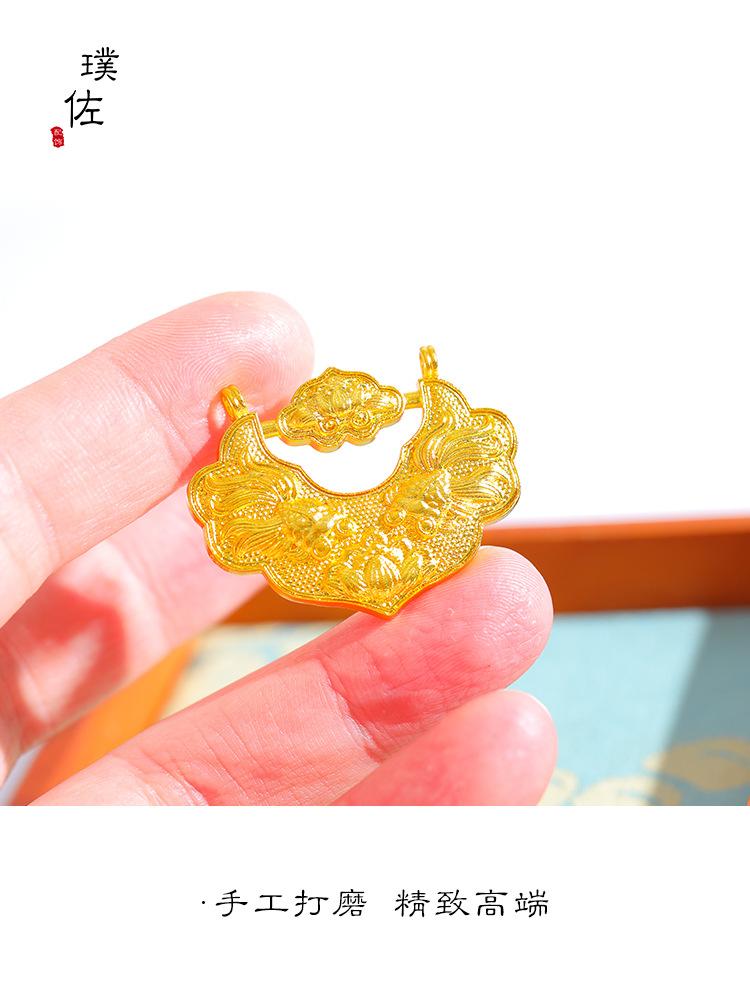 Colgante con candado Ruyi de oro arena de Vietnam, resistente a la decoloración y con incrustaciones de diamantes, marca Ruyi, candado de pez, accesorios de bricolaje, collar, cadena de suéter