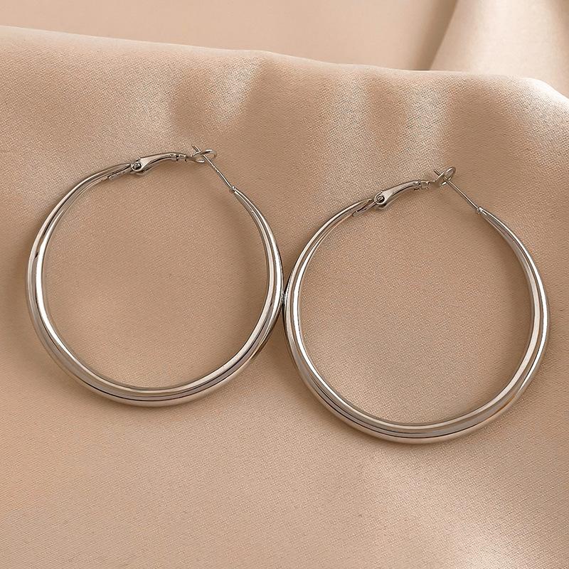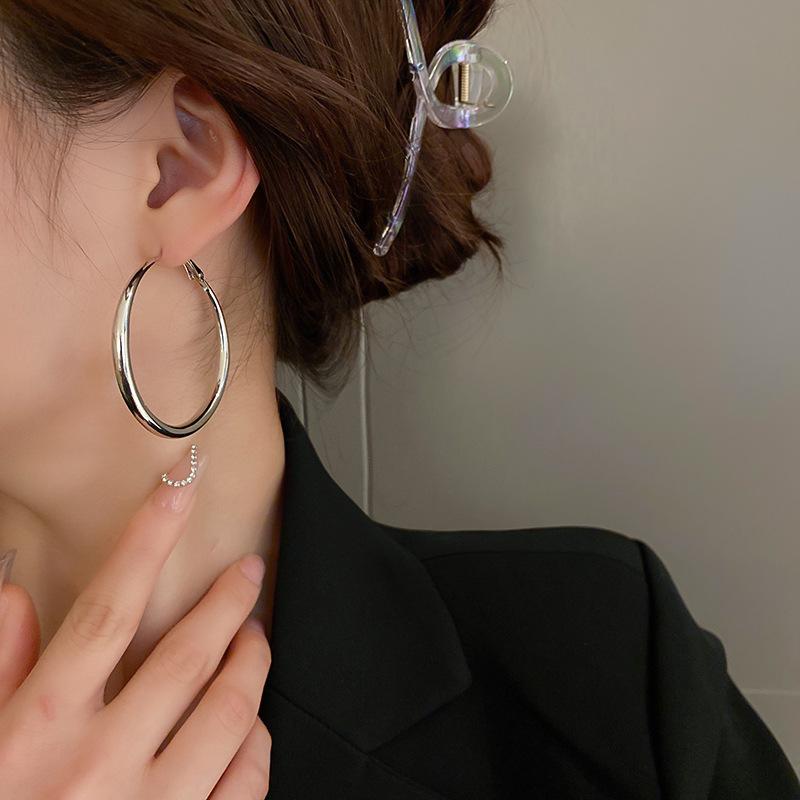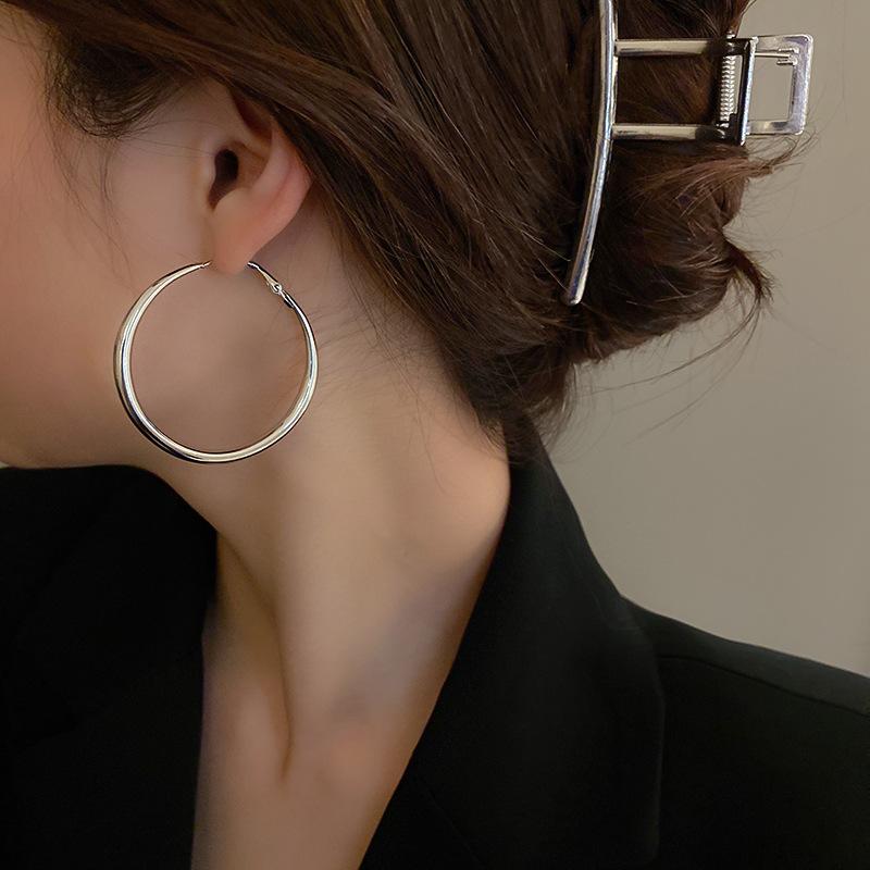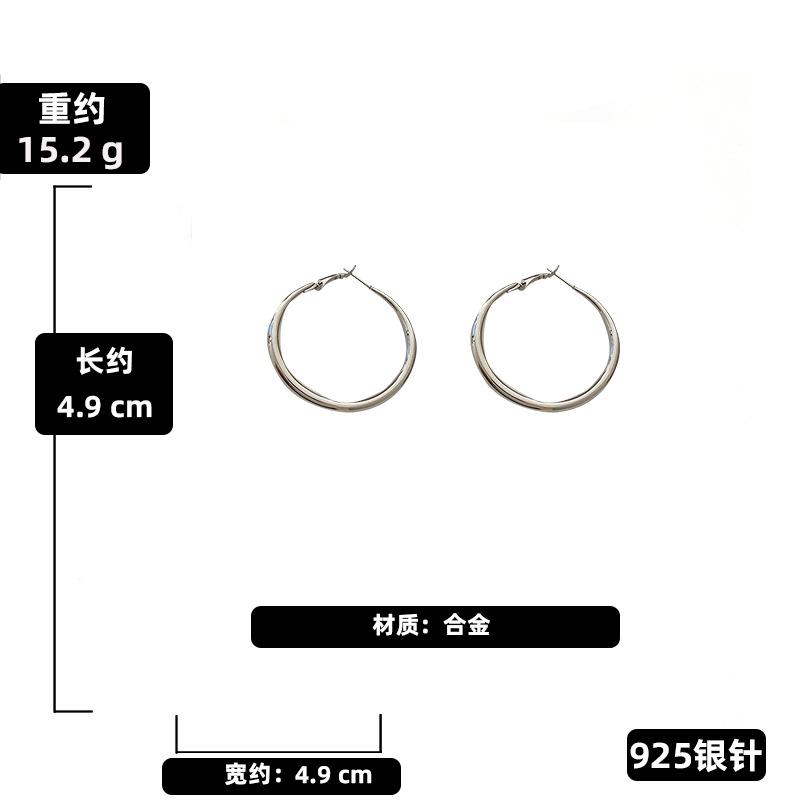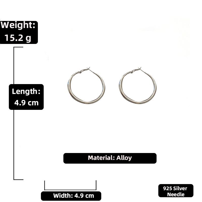 Pendientes Geométricos de Círculo Grande Metálico Exagerado Aguja de Plata Pendientes de Estilo Frío Simple y Elegante Ins Europeos y Americanos para Mujer