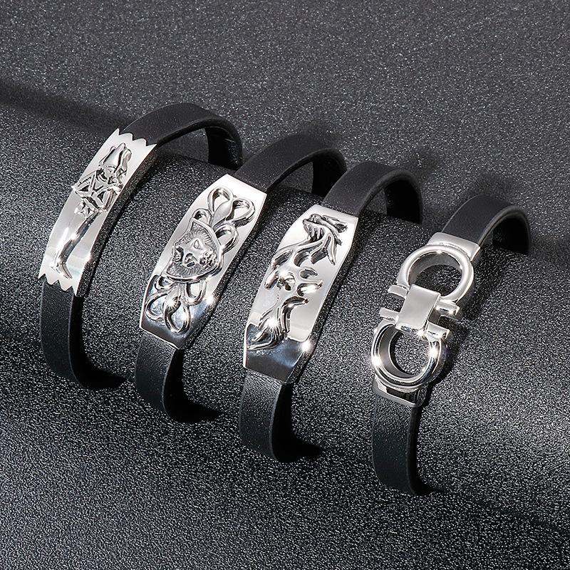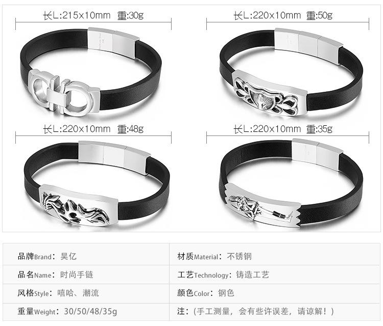 Pulsera de acero inoxidable con diseño de animales, tendencia europea y americana, venta al por mayor, estilo hip hop, acero de titanio, popular, simple, joyería de cuero para hombres