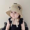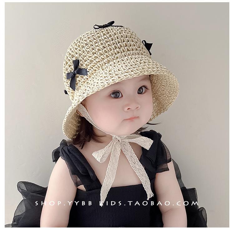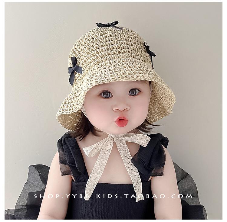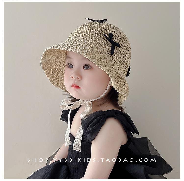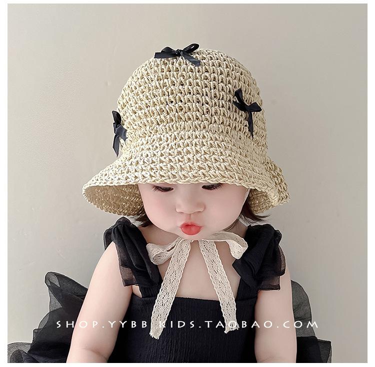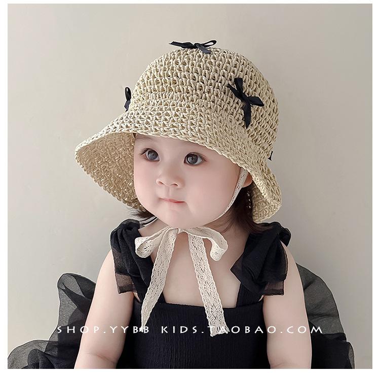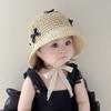 Sombrero de bebé para niña, sombrero de paja fino de verano estilo occidental con lazo y correa, parasol para niña, sombrero de pescador con protección solar a la moda
