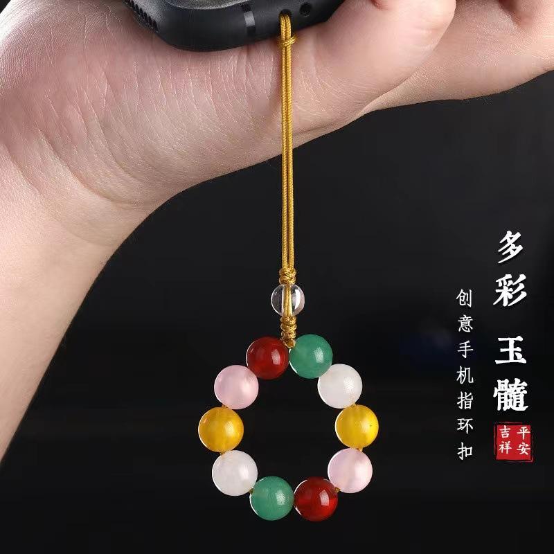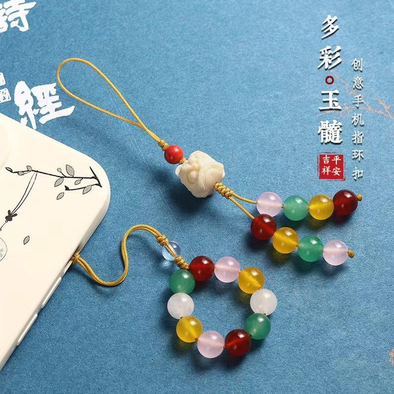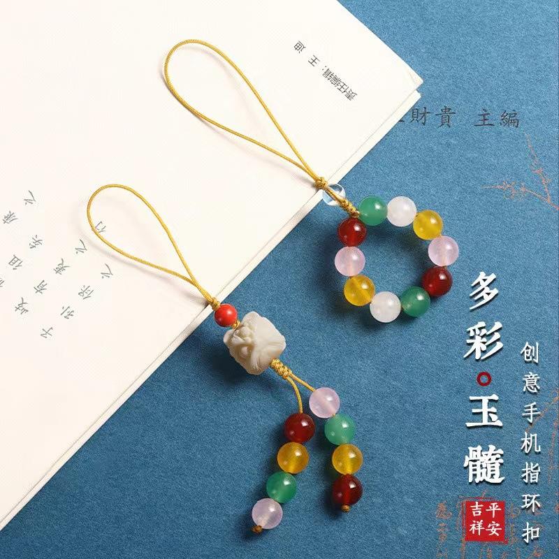 Llavero colgante de calcedonia multicolor para teléfono móvil, de moda, con cinco elementos, para amantes de los leones y la danza de la fruta de marfil.