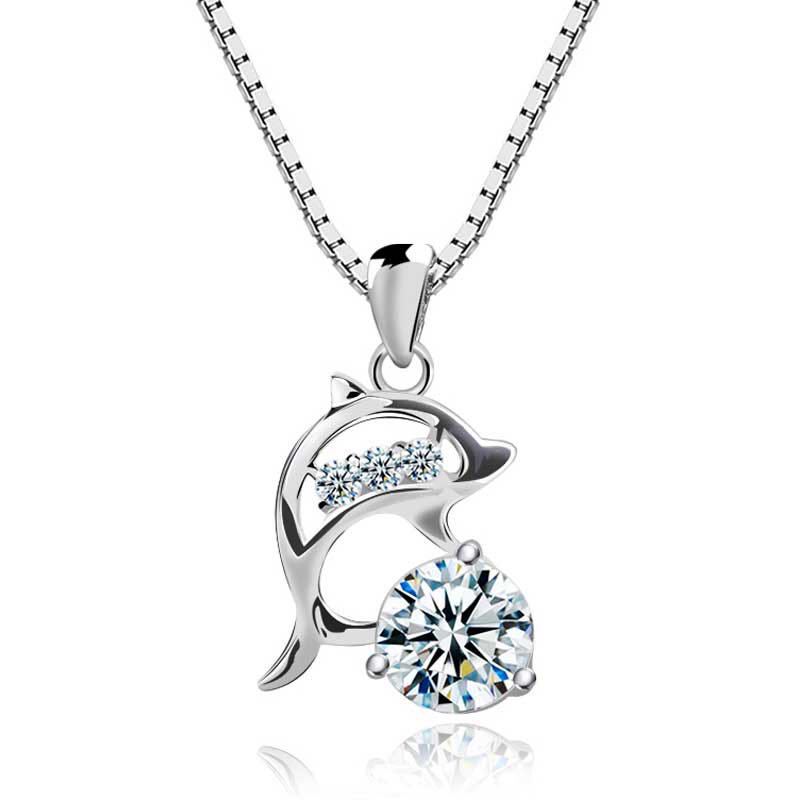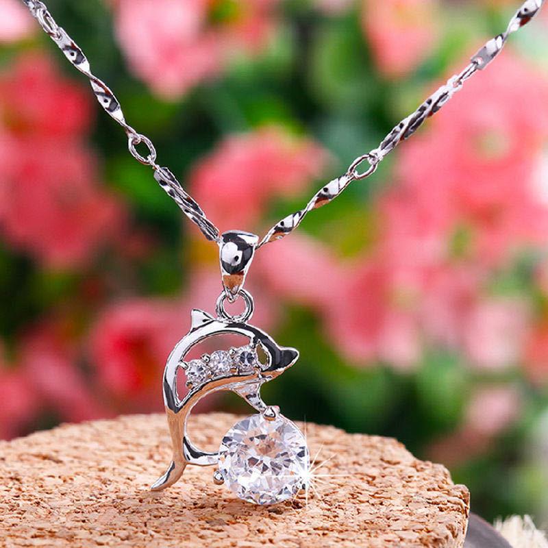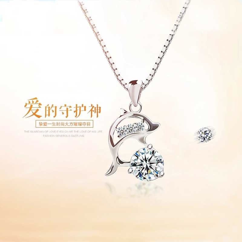 Nuevo collar para mujer, cadena de clavícula de plata S925, colgante de cristal de delfín simple japonés y coreano, joyería, regalo de cumpleaños para novia