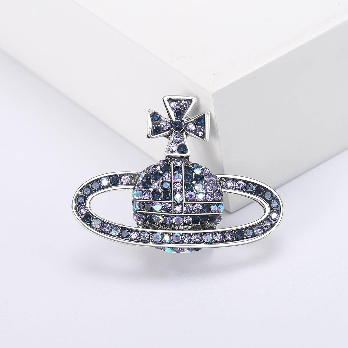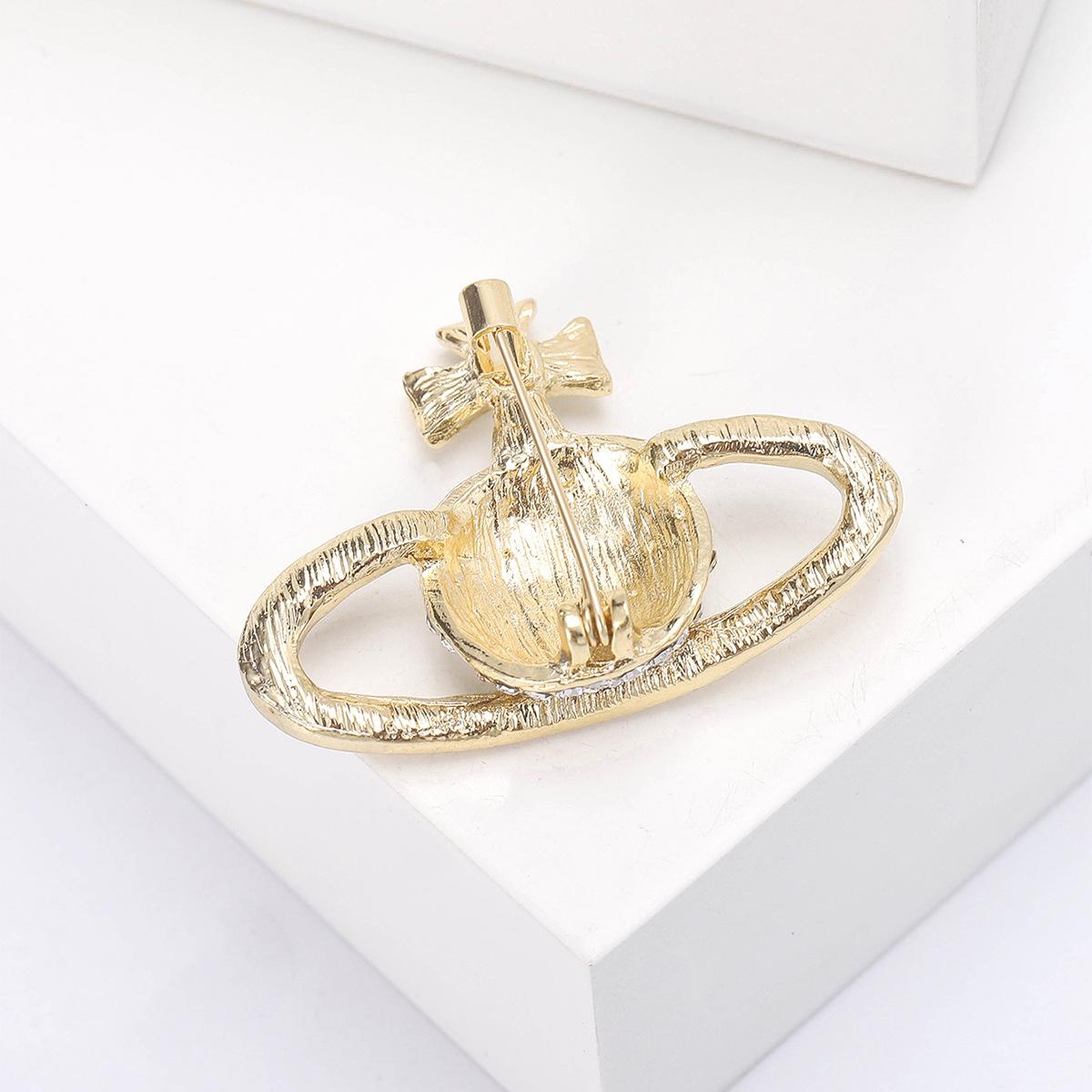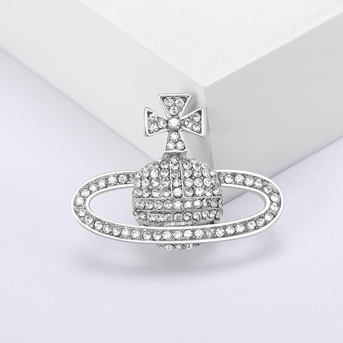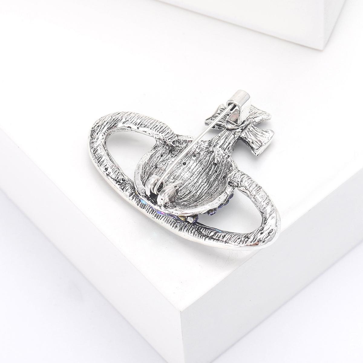 Compra Broche de planeta con diamantes de imitación creativo de moda coreana, ramillete de Saturno de aleación de diamantes, joyería, suéter sencillo, accesorios de cárdigan al por mayor en Joom.pro