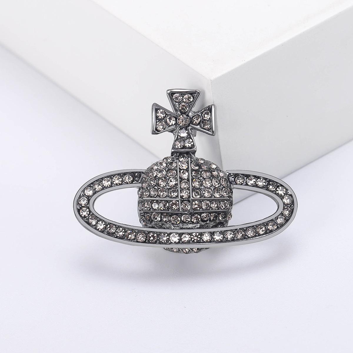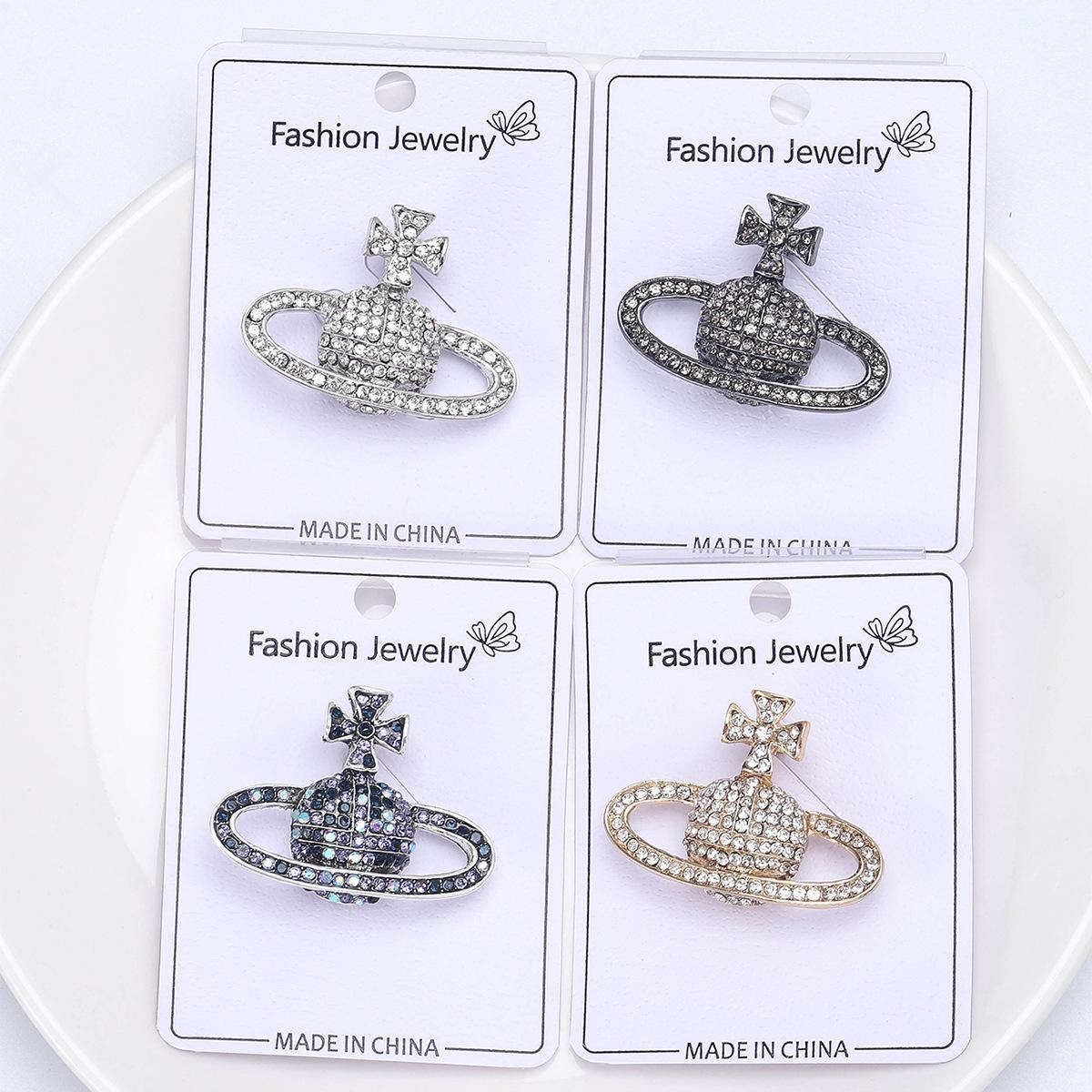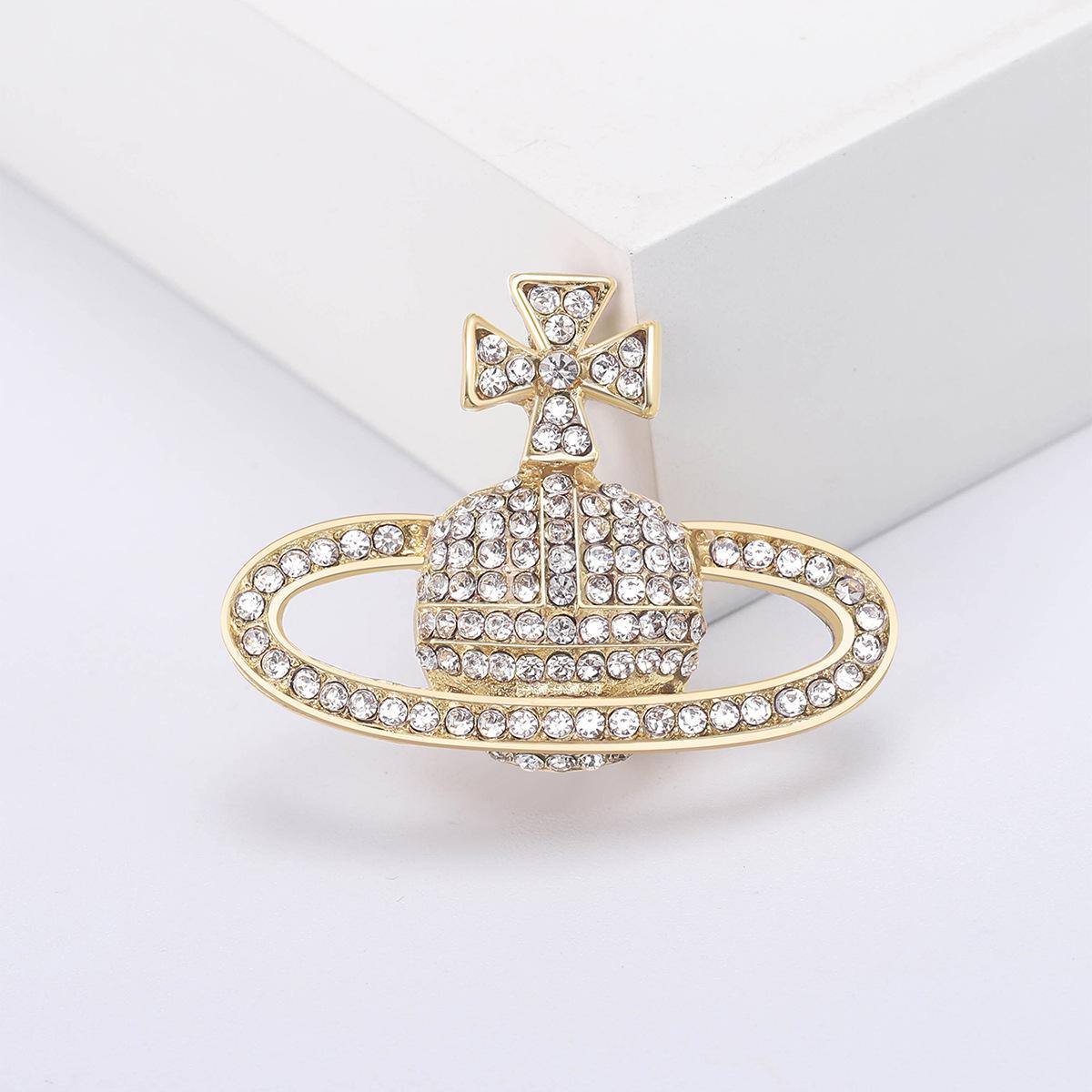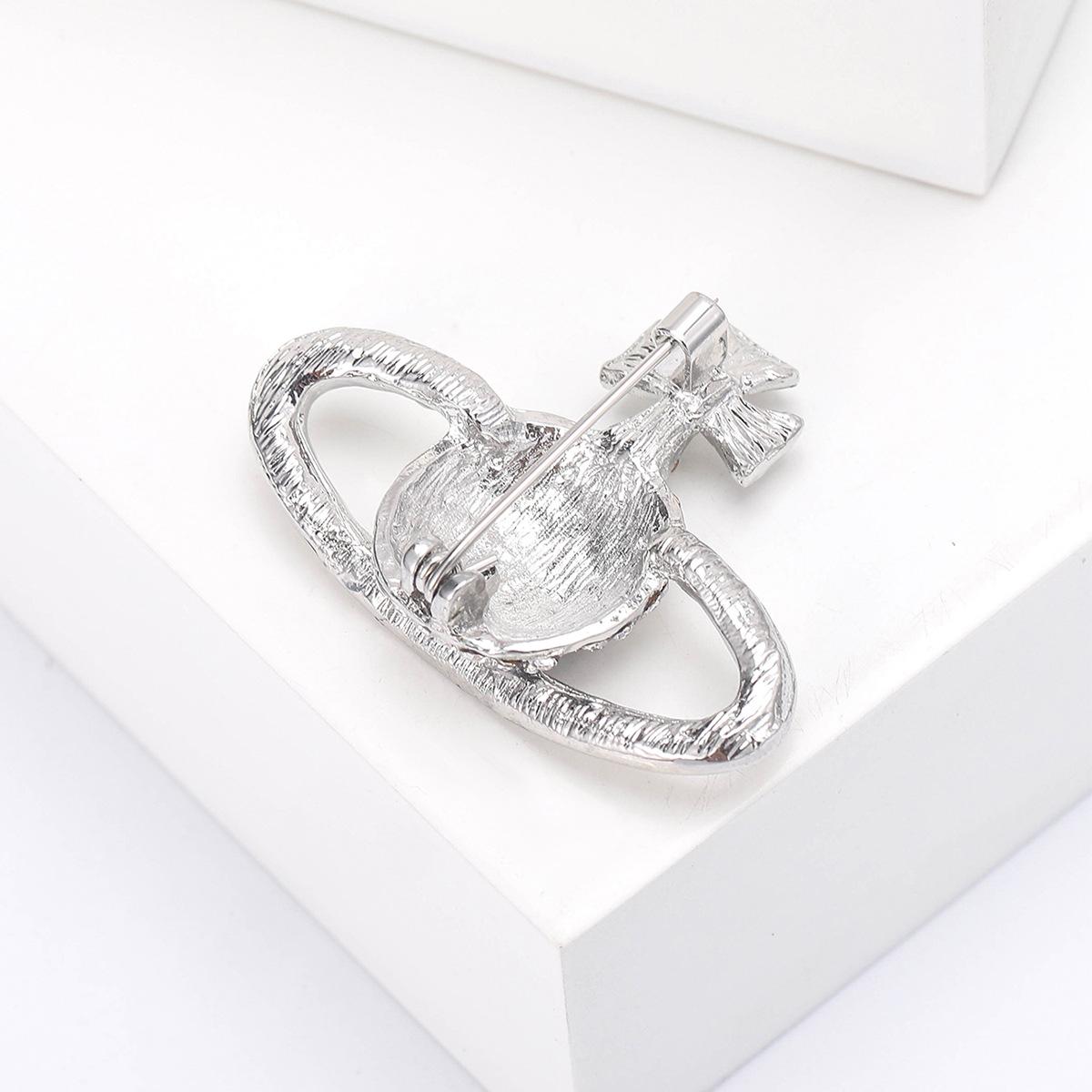 Compra Broche de planeta con diamantes de imitación creativo de moda coreana, ramillete de Saturno de aleación de diamantes, joyería, suéter sencillo, accesorios de cárdigan al por mayor en Joom.pro