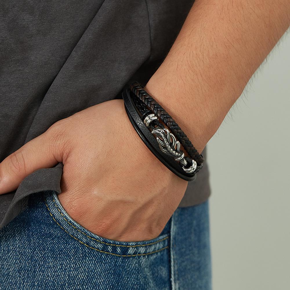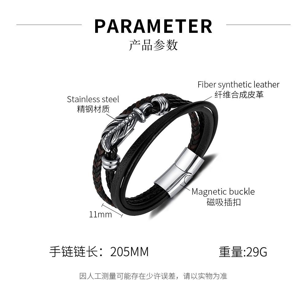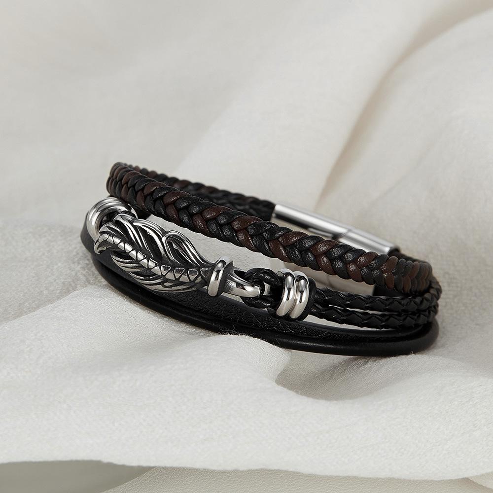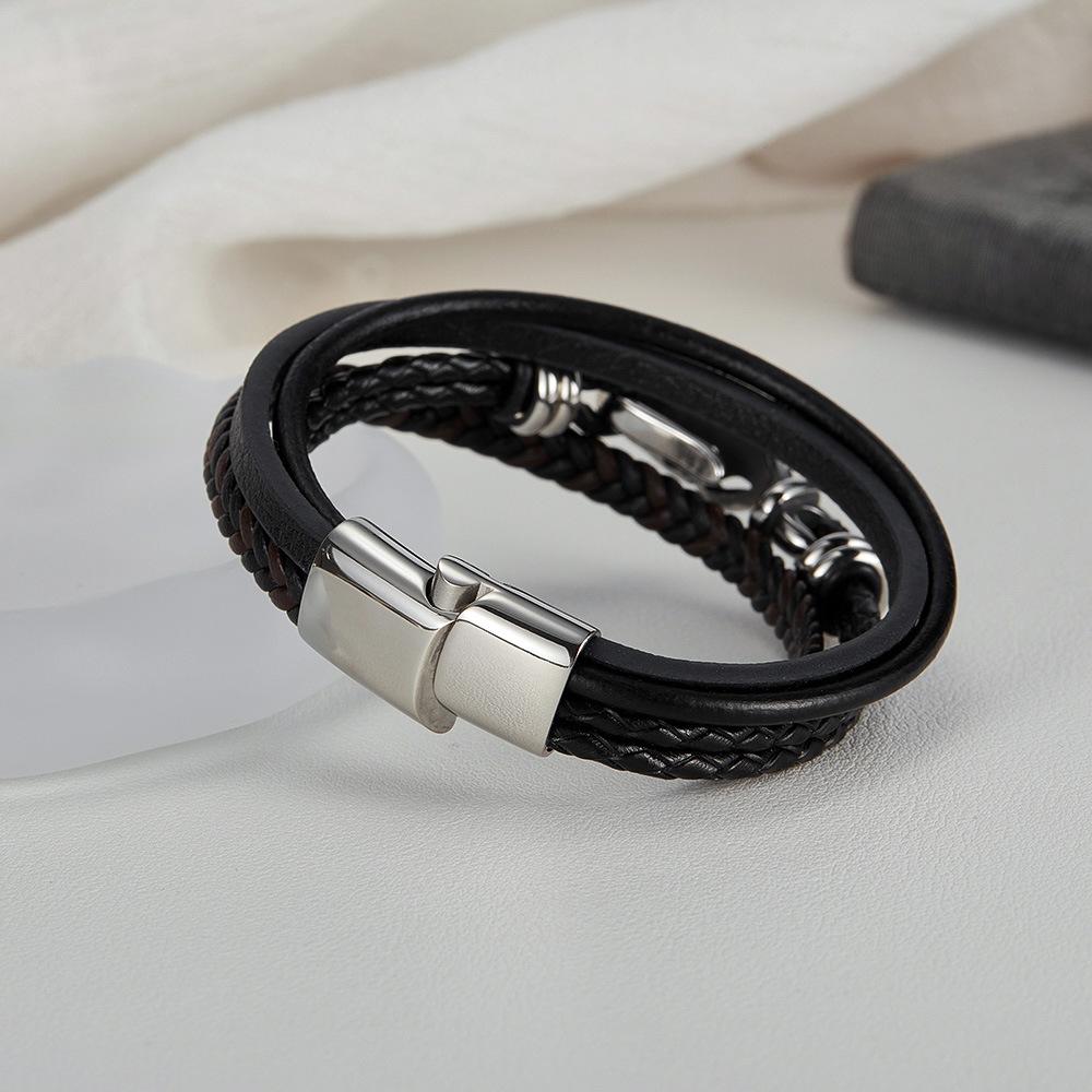 Pulsera de acero y titanio transfronteriza europea y americana para hombre, joyería personalizada, accesorios geométricos combinables, pulsera de cuero tejido multicapa