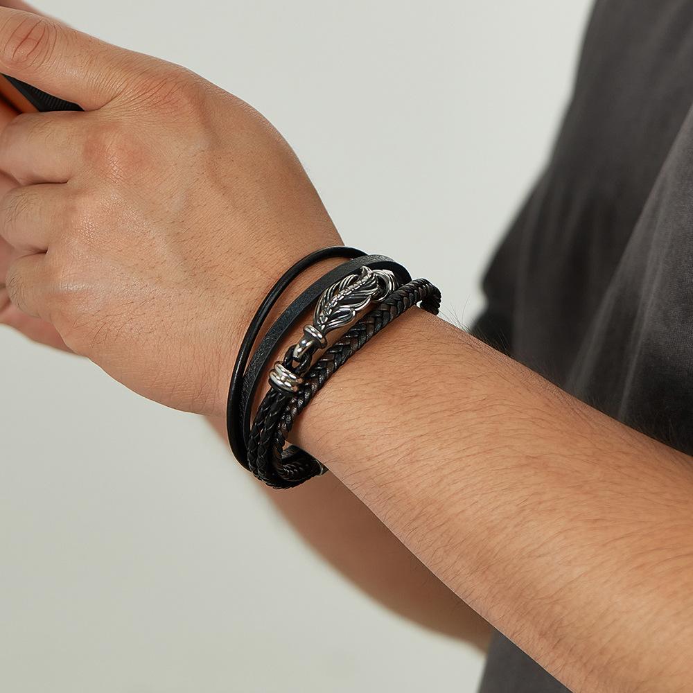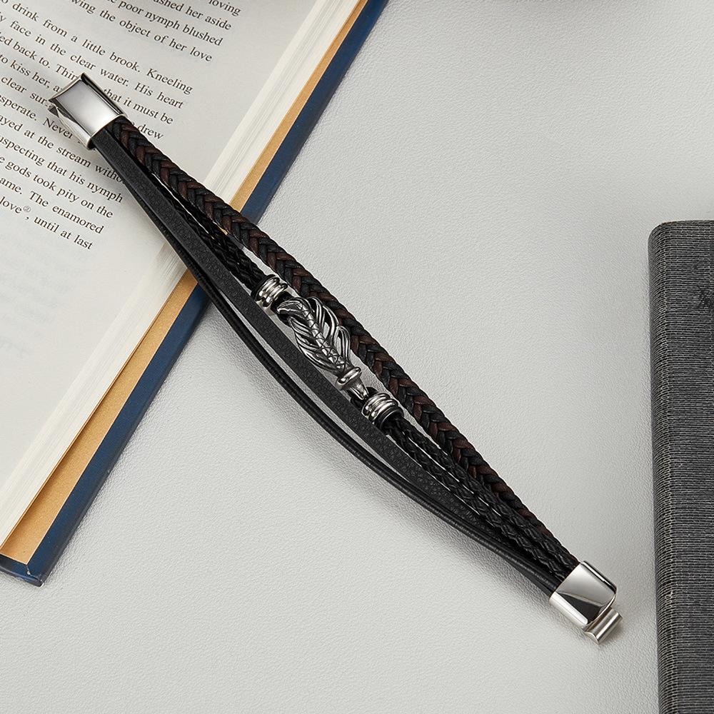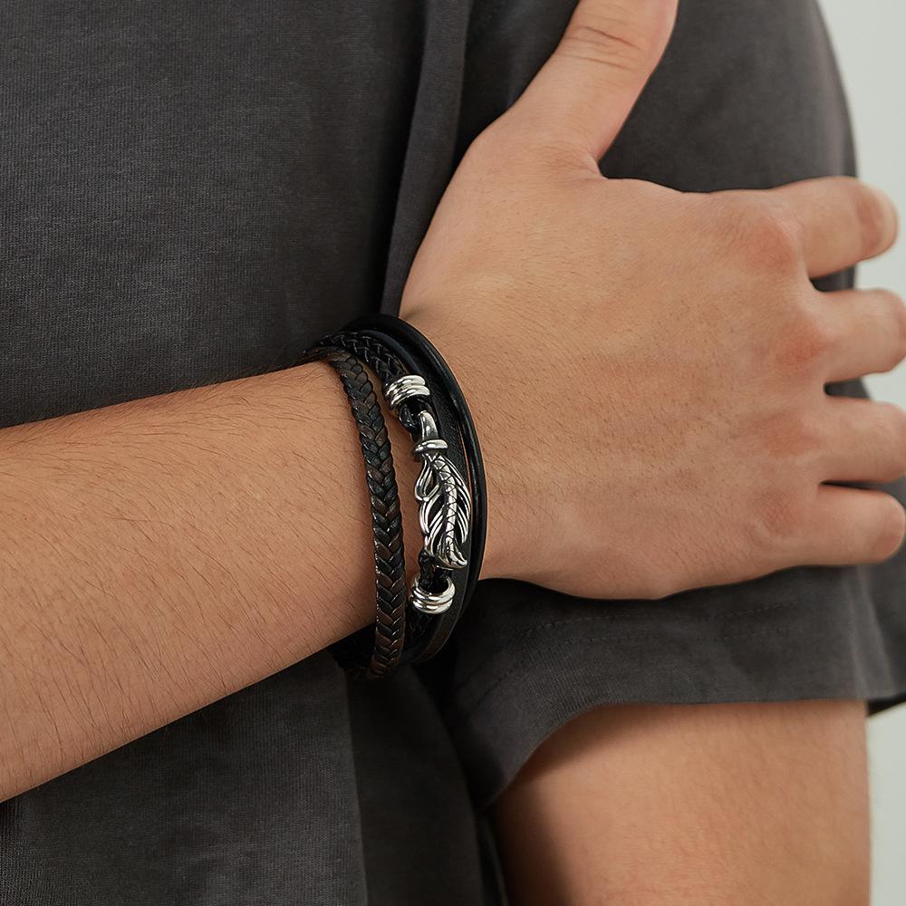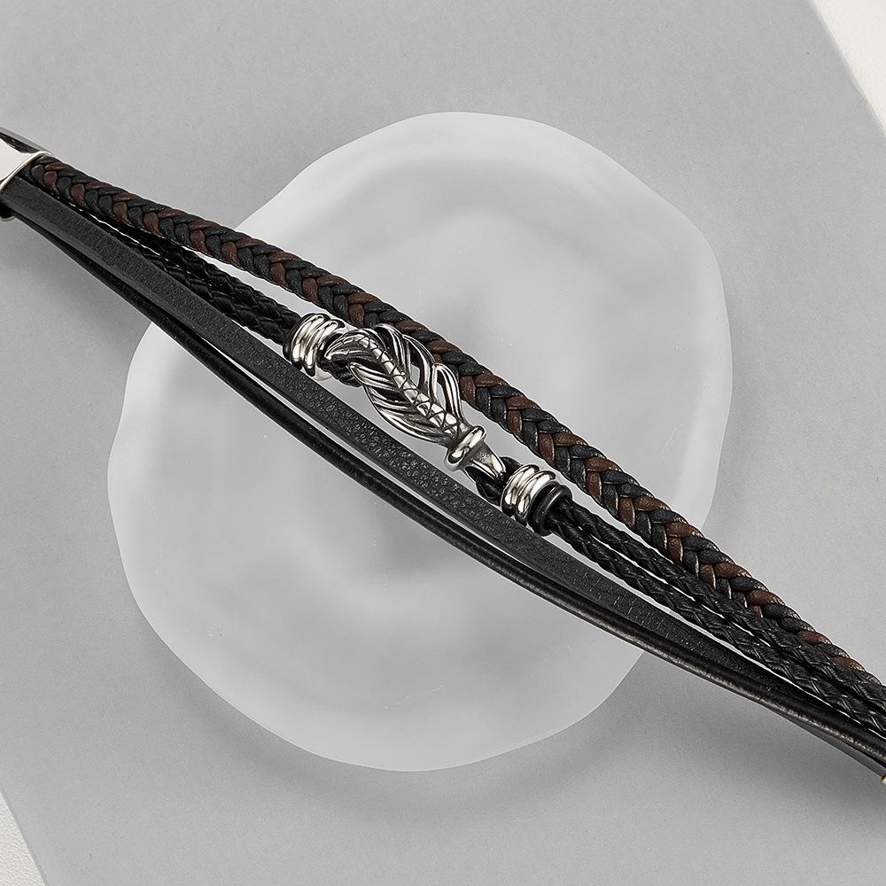 Pulsera de acero y titanio transfronteriza europea y americana para hombre, joyería personalizada, accesorios geométricos combinables, pulsera de cuero tejido multicapa