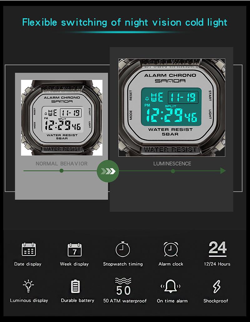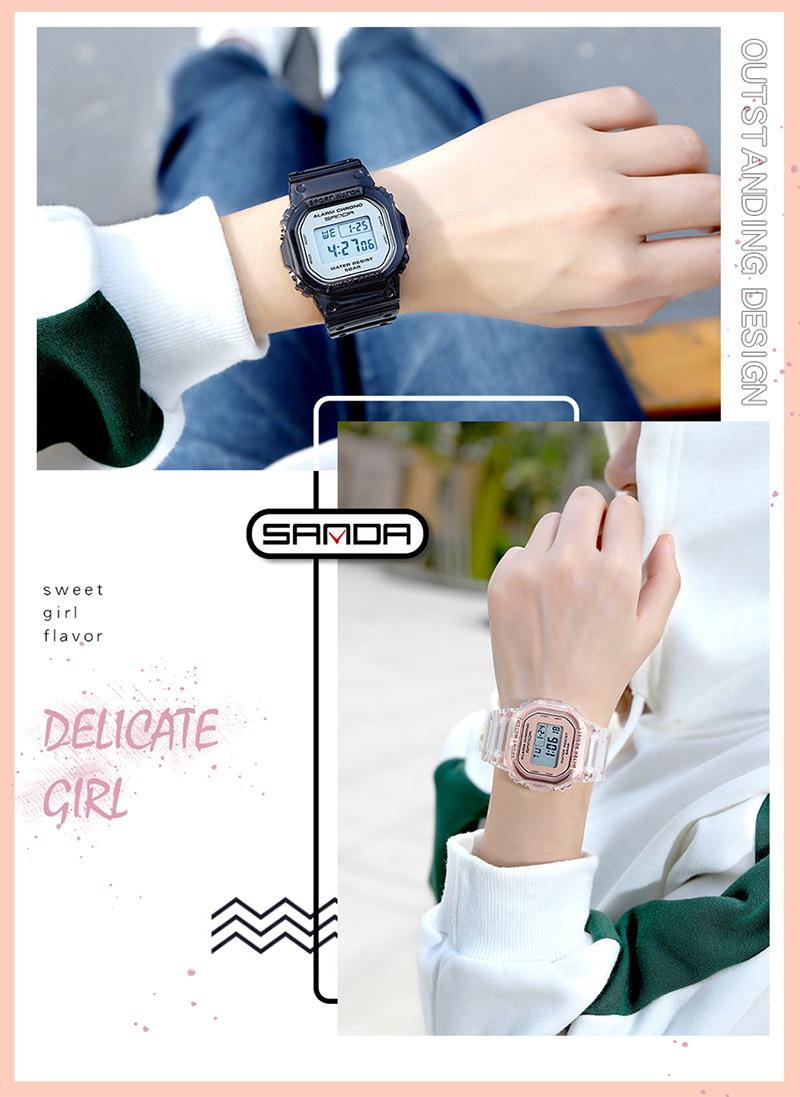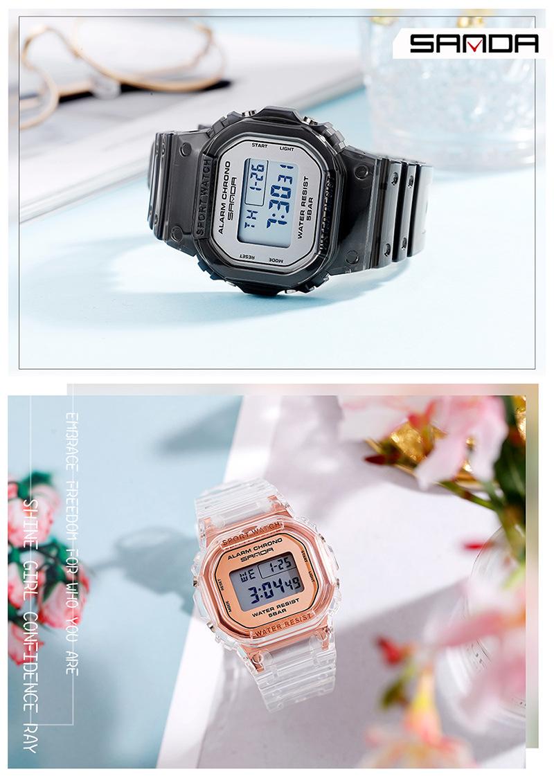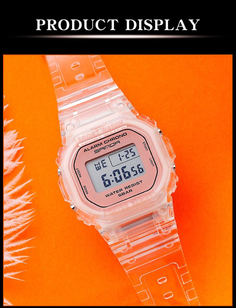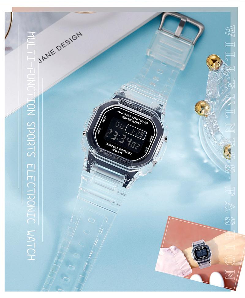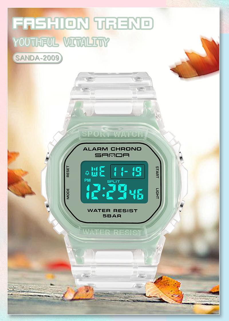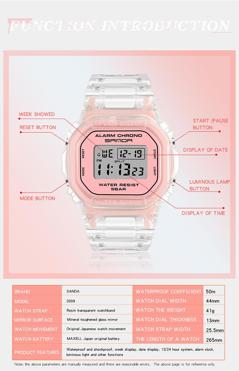 SANDA 2009 reloj deportivo electrónico multifunción resistente al agua con correa transparente reloj de moda para jóvenes estudiantes